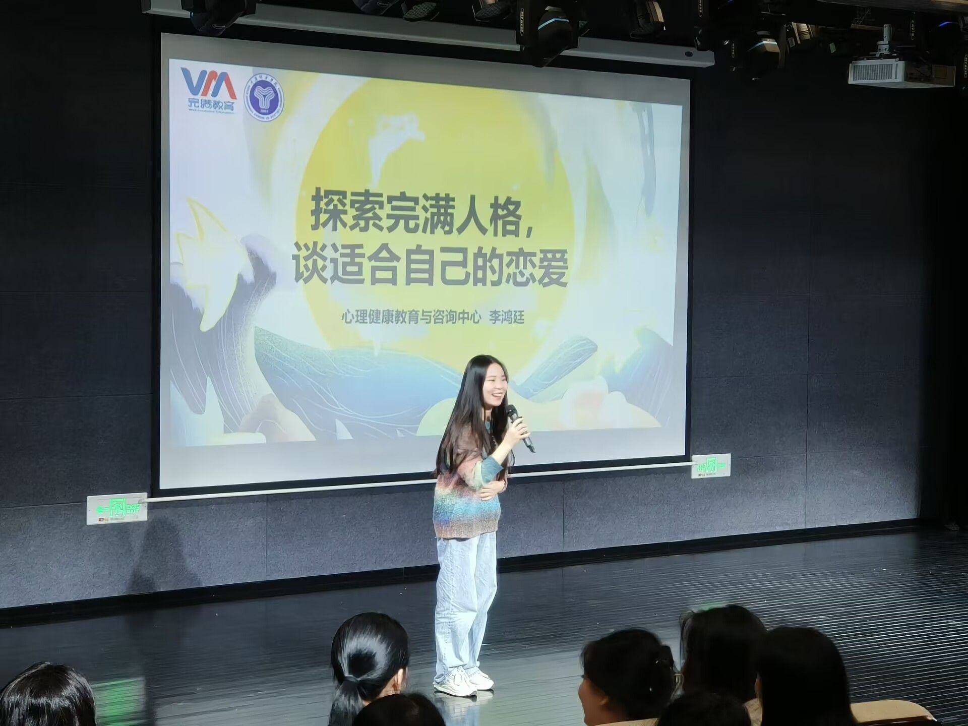 根据我校完满人格教育方略,从九型人格理论出发,开展系列工作。10月18日13:30,心理健康教育与咨询中心专职心理老师李鸿廷和兼职心理教师彭崇清借外国语学院“修身为玉润草木,砥砺德行为中华”主题年级会,向150名学生开展完满人格与恋爱主题讲座。此次活动旨在通过九型人格理论的讲解和实践,结合恋爱课题,帮助学生深入了解自我和亲密关系,进而塑造更加完满的人格。