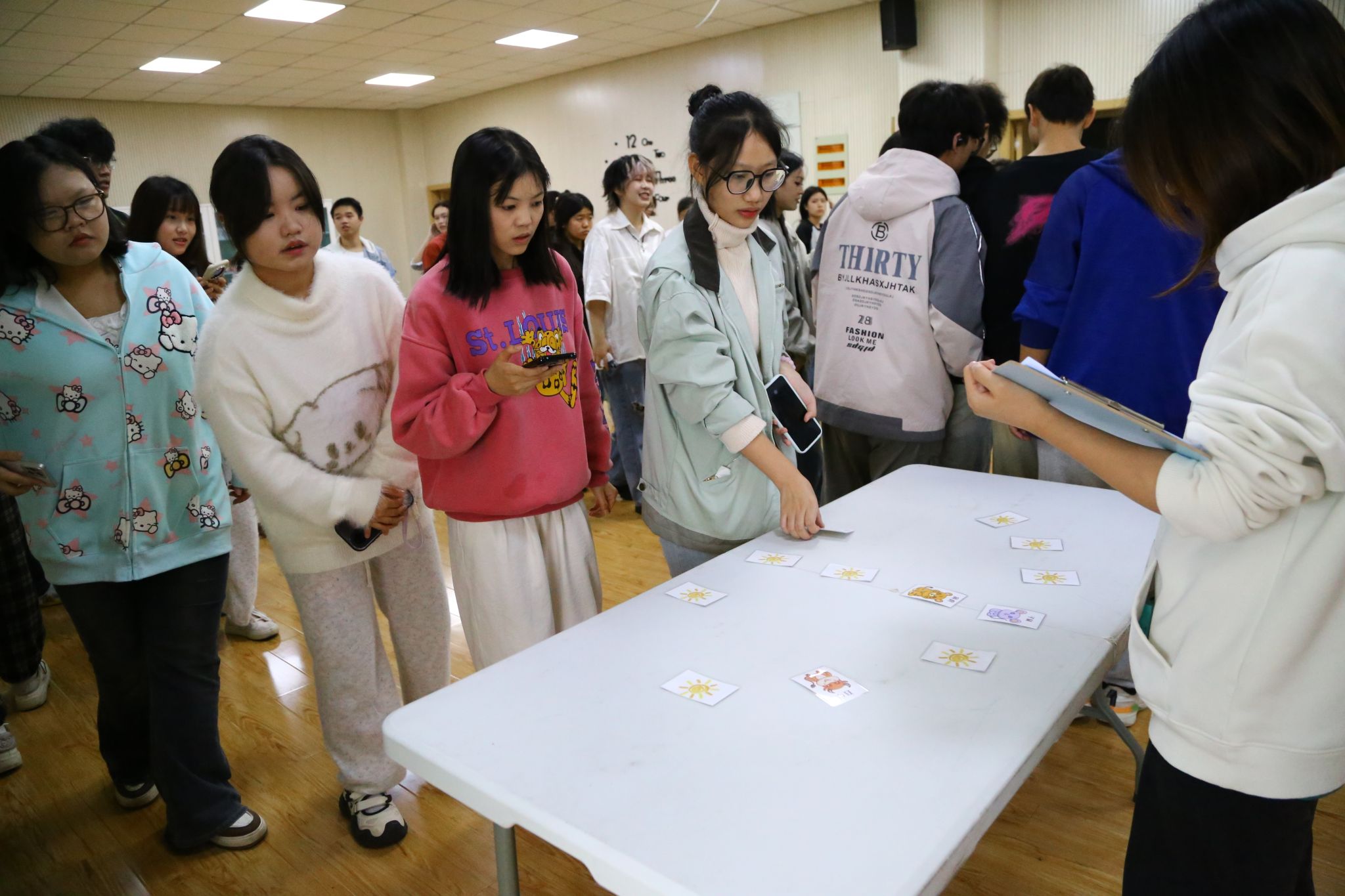 在“定向寻宝”环节,训练营采用“主线”定向打卡和“支线”寻宝相结合的模式,设置了3个校内地标场所作为寻宝点。活动开始前田老师设置了趣味翻牌活动,以此来充分调动大家的积极性。