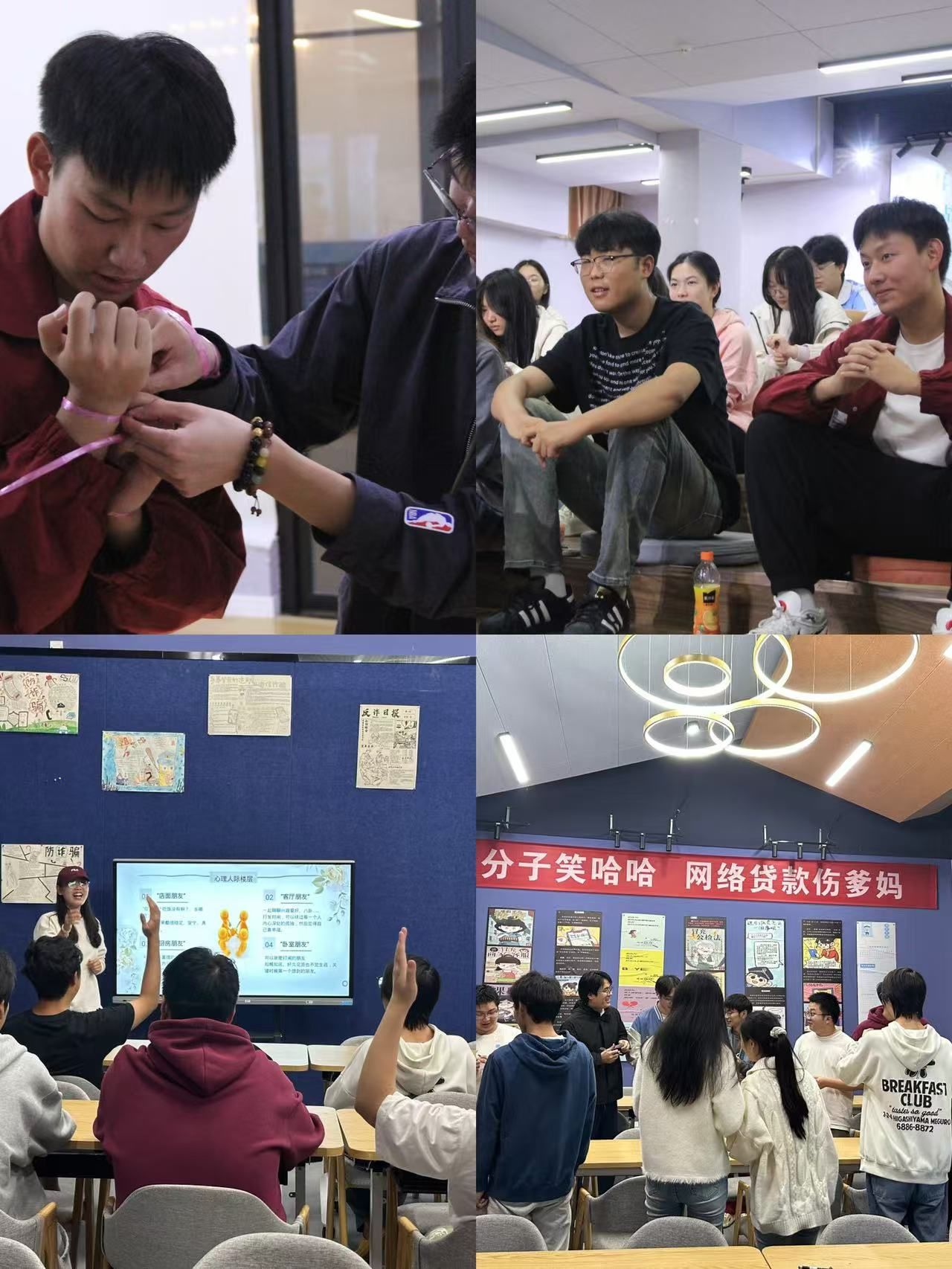 这些团体辅导活动各具特色,能从不同角度帮助学生增进彼此间的了解与信任,提升人际交往能力和团队协作水平,为学生们创造一个轻松愉快且富有教育意义的活动氛围。兼职心理教师安朝东组织了“走出生命的孤岛 - 人际关系”主题讲座。通过引导小组互动、案例分析等方式,讲解人际交往中的心理效应,如首因效应、近因效应、投射效应等,同时传授相关技巧及解决困扰的方法。这有助于同学们更好地理解人际关系,走出自我封闭的孤岛,进而提升自身的综合素质。远景学院兼职心理教师张林老师借助“爱在指尖”“解开千千结”“雪花片片”等一系列团辅方案展开活动,期间多次提及人际关系的“黄金法则”。通过团队成员之间的互动,培养了积极向上的人际交往态度,促进情感交融,并增强团队凝聚力。兼职心理教师田园园老师组织了“双向奔赴的友谊”大学生人际团辅活动,通过自我介绍、“绘声绘色”“捆绑任务”“心声传递”等互动游戏方式。让学生们增进了解、将所学应用到生活工作中,解决团队内部沟通协作挑战,提升团队凝聚力。