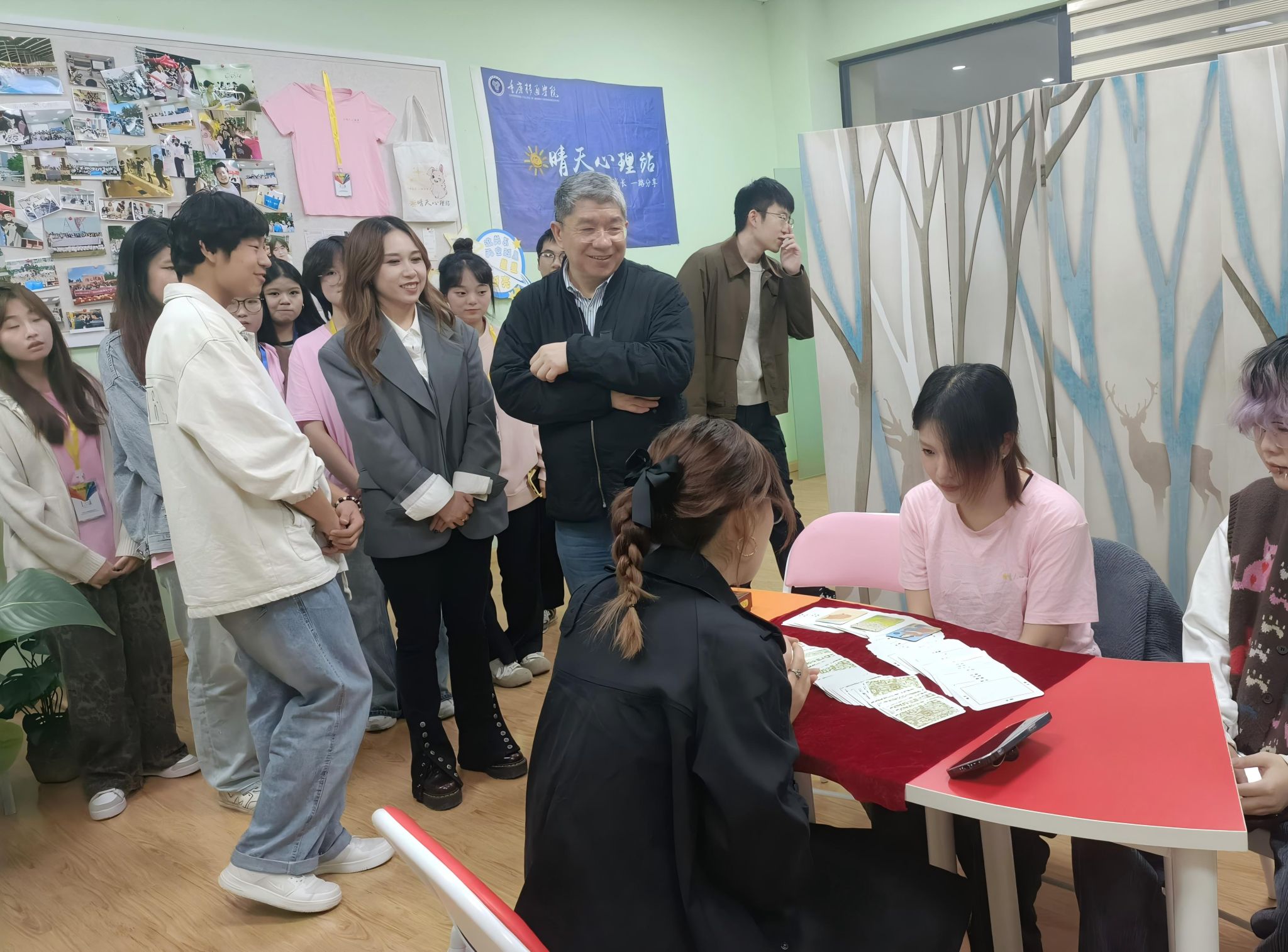 随着现代社会节奏的加快和学习压力的增大,大学生的心理健康问题日益受到关注。为了丰富校园文化生活,提升学生的心理调适能力,重庆移通学院晴天心理站特别策划并于2024年11月15日,成功举办“晴天之约,心灵之旅”——心理中心开放体验日活动。本次活动旨在通过轻松愉快的游戏和互动,帮助学生释放压力,增进同学间的友谊,同时提高对心理健康重要性的认识,更有西南大学心理学部郭成教授莅临现场参观指导。