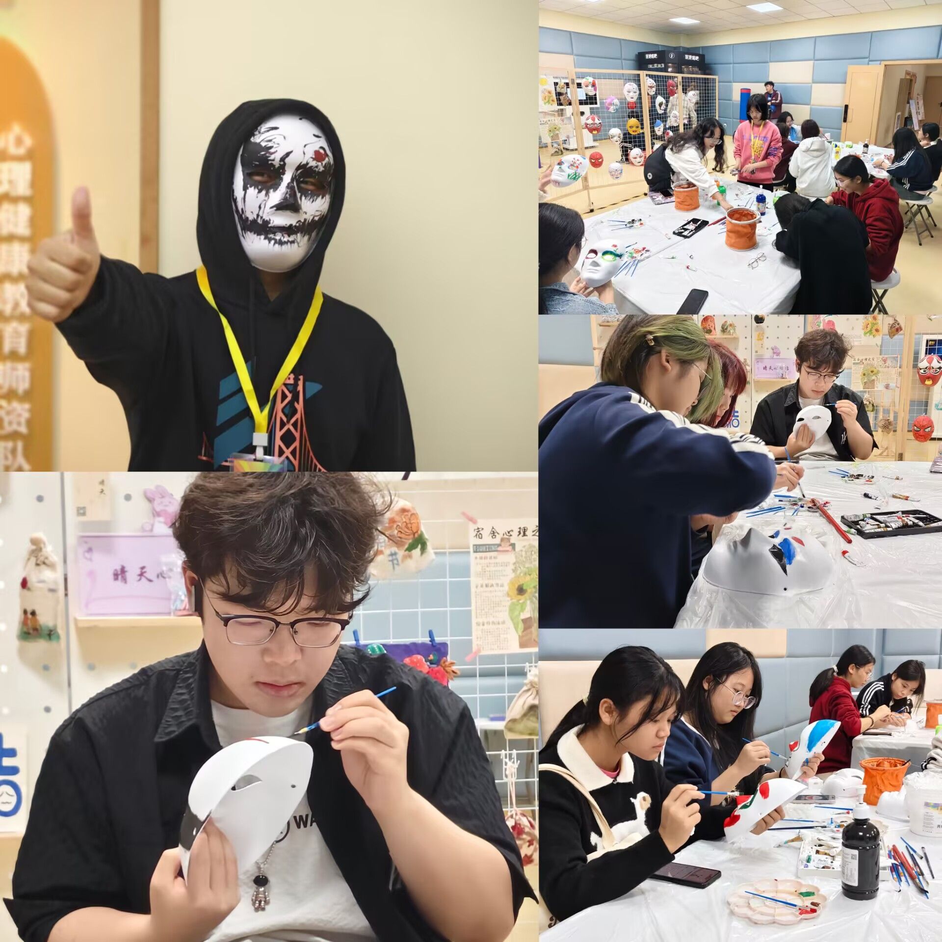 在手绘面具区域,色彩与创意交织。大家拿起画笔,在面具上尽情挥洒,将内心的情感、想法通过色彩和图案展现。或明艳欢快,或深沉神秘,每一个面具都是参与者心灵的一扇窗,让被隐藏的情绪有了具象的表达。