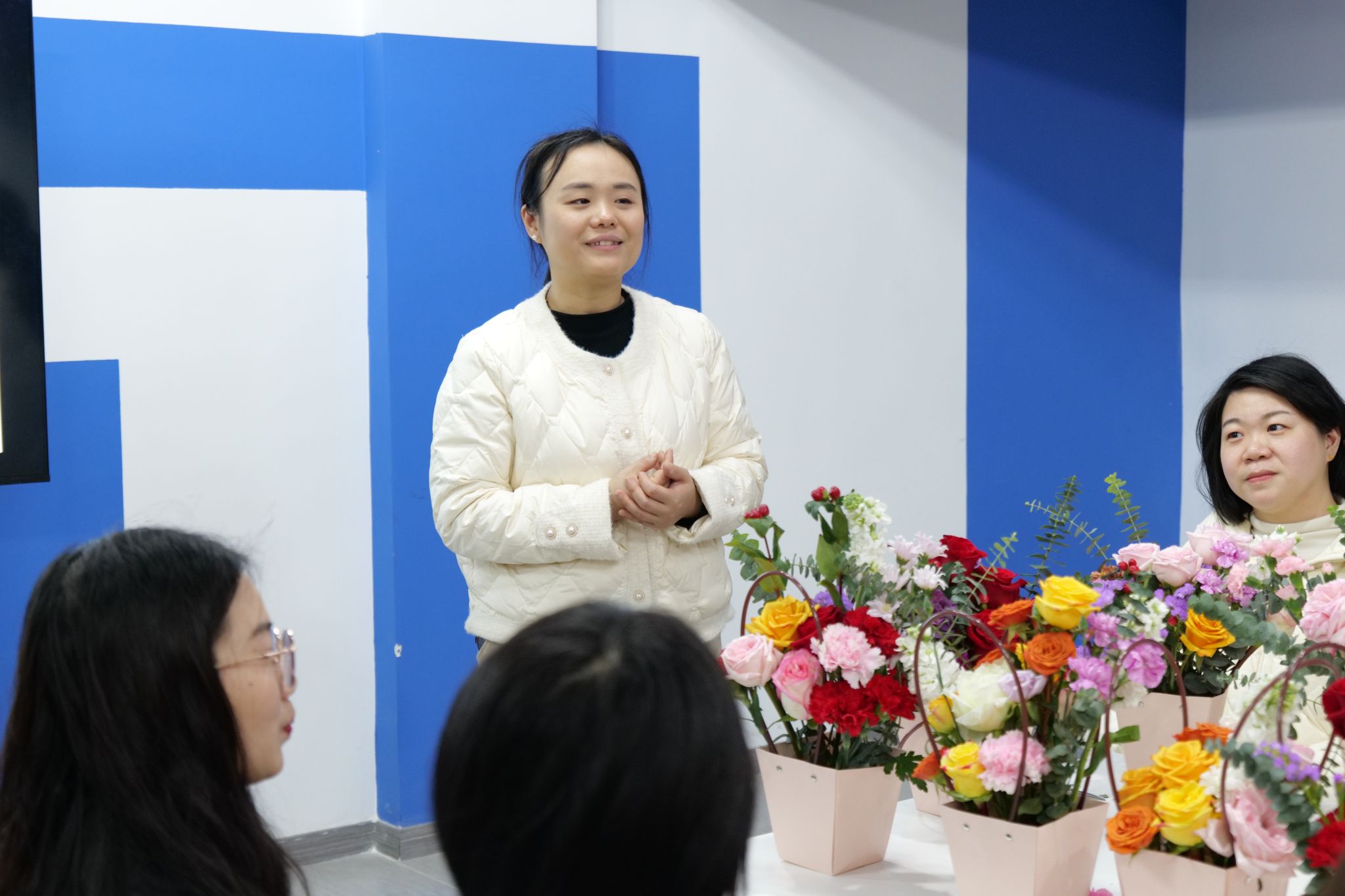 花是来自大自然的馈赠,它用它的美丽芳香来滋养人们的心灵。花艺疗愈正是利用花的美来疗愈受伤的心,最终我们的身心会像花一样绽放。女生节前夕,淬炼商学院于2025年3月5日16:00在天空书院青空朋辈畅谈室开展开展了以插花艺术为载体的心理健康主题活动。本次活动邀请到淬炼商学院学工副院长刘薇唯、团总支书记黄新燕及辅导员们,40名师生共同体验插花艺术的疗愈过程。