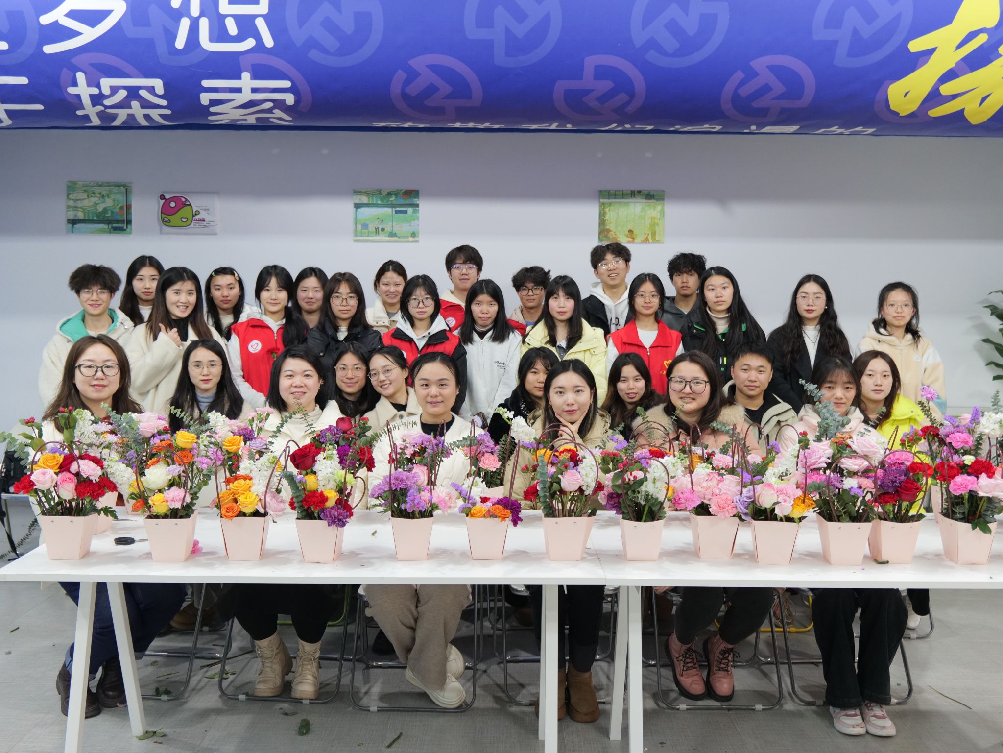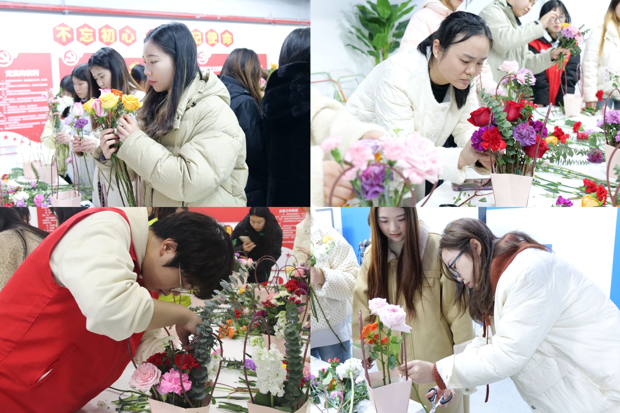 插花,这一过程宛如绘制一幅细腻的自然画卷。在温馨而充满创意的插花课堂上,同学们与老师携手合作,共同沉浸于这场关于美与心灵的探索之旅。大家在挑选花材、修剪花枝、设计花篮,每一步都展现着内心所想所感。随着活动的持续深入,一幅幅既和谐又富有层次的插花作品悄然成形,它们或优雅、或热烈、或清新,如同学员与老师们内心的真实写照,在这片小小的空间里绽放出无限的光彩。