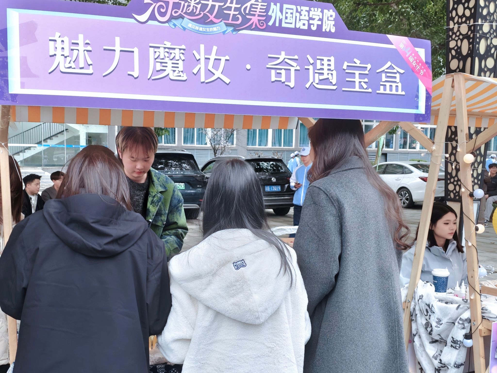 “她走在美的光彩中,如夜晚皎洁无云而且繁星满天。”女性,是世间熠熠生辉的存在,以善良与勇气、智慧与力量,镌刻下独一无二的人生篇章。在心理健康领域,女性同样展现出坚韧不拔与细腻敏锐,她们的内心世界丰富而深邃 ,值得被看见、被呵护。为全方位活跃校园文化生活,丰沛同学们的精神世界,淋漓尽致地展现当代女大学生青春洋溢、积极向上的迷人风采,同时激励同学们踊跃投身活动,赋予其更多自信用以表达与展示自我,增进同学间的真挚交流,使其发现自身的美好与独特之处,收获惊喜与感动。外国语学院青年志愿者协会安心志愿服务支队于3月7日和权益部一起在黄桷树广场共同开启一场展现女性美好的集市摊位活动,充分融入女生节这一热闹氛围,特别关注女性心理健康层面的需求与成长。
