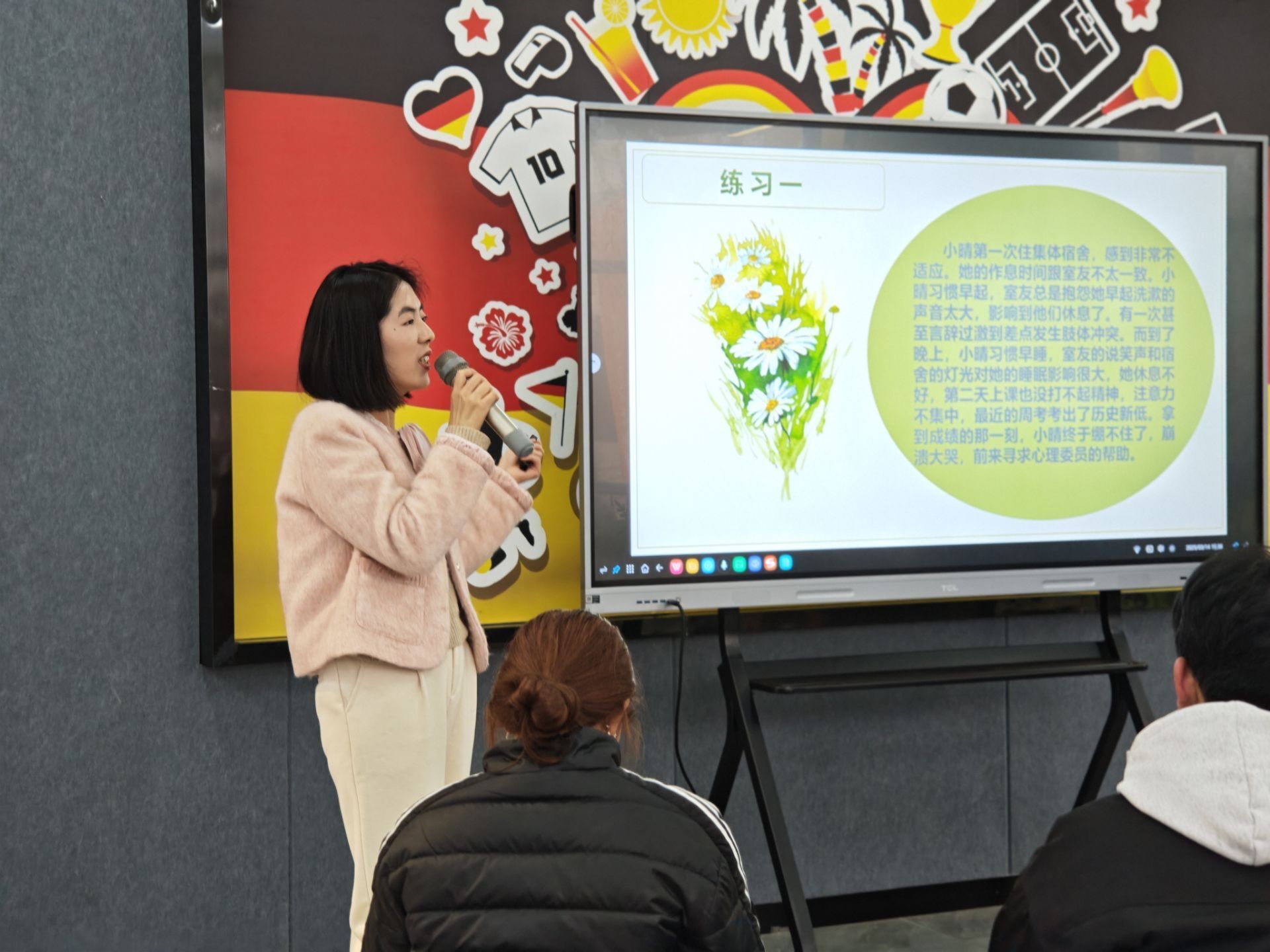 为了让学生更好地掌握这些技术,本次培训设置了对话练习环节,围绕小晴在集体宿舍遇到的问题展开,在座的心理委员们积极讨论,纷纷从倾听小晴的感受、帮助她与室友沟通、调整作息安排等方面提出建议。在互动中,大家彼此启发、深入探讨,充分体现了朋辈互助、共同成长的温暖氛围。通过这种实战练习,心理委员们不仅增强了自身的沟通能力,也加深了对心理工作的理解和信心。