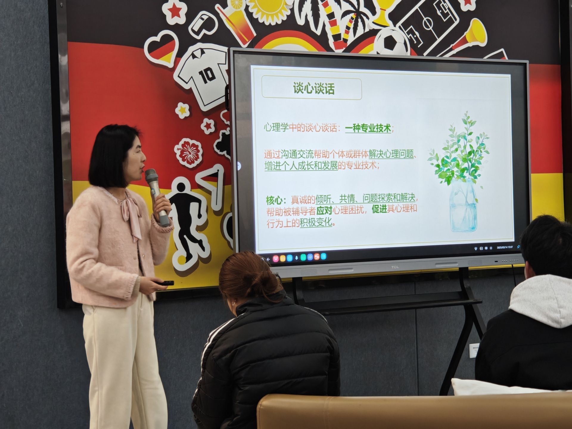 培训伊始,王玉勤老师以生动的视频案例引出谈心谈话的重要性,是作为沟通交流、帮助个体或群体解决心理问题、增进个人成长和发展的专业技术。她首先指出,作为助人者,首先要先学会给自己赋能,调整心态、清空个人偏见,做好谈心谈话前的自我准备,在帮助他人的过程中,自身也能收获快乐,实现双向疗愈。其次,谈话对象的选择也是谈心谈话的关键环节,考虑谈话目的、了解谈话对象能够更好、更有效地进行沟通。王玉勤老师表示,在选择谈话对象前,充分了解其性格特点、兴趣爱好、工作经历和家庭背景等信息,有助于建立良好联系,找到共同话题,增进彼此之间的了解和信任,找到共同话题,提升沟通效果。