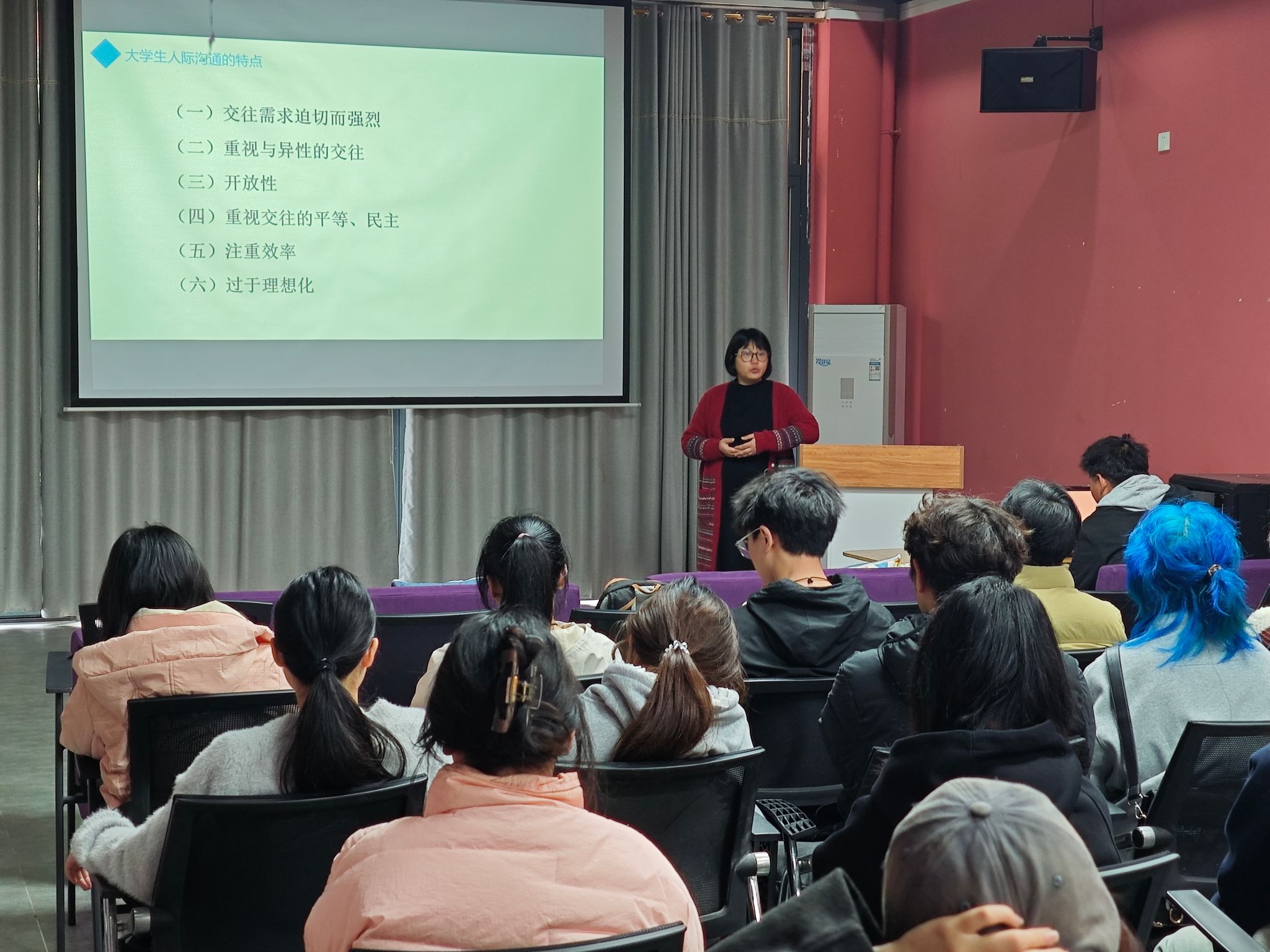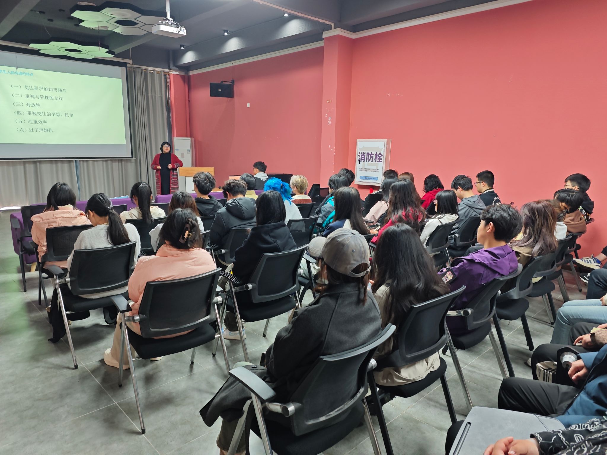 随后,学院邀请兼职心理老师龙涛老师以丰富的案例和生动的讲解,剖析寝室人际关系中常见的矛盾冲突及产生原因,如生活习惯差异、性格不合等。龙涛老师指出,良好的寝室人际关系是大学生心理健康的重要保障,心委应积极引导同学们学会理解、包容和沟通。在如何进行有效沟通方面,龙涛老师由案例引入,展开讲述了不同沟通方式下的问题解决情况。并传授了实用的应对策略。