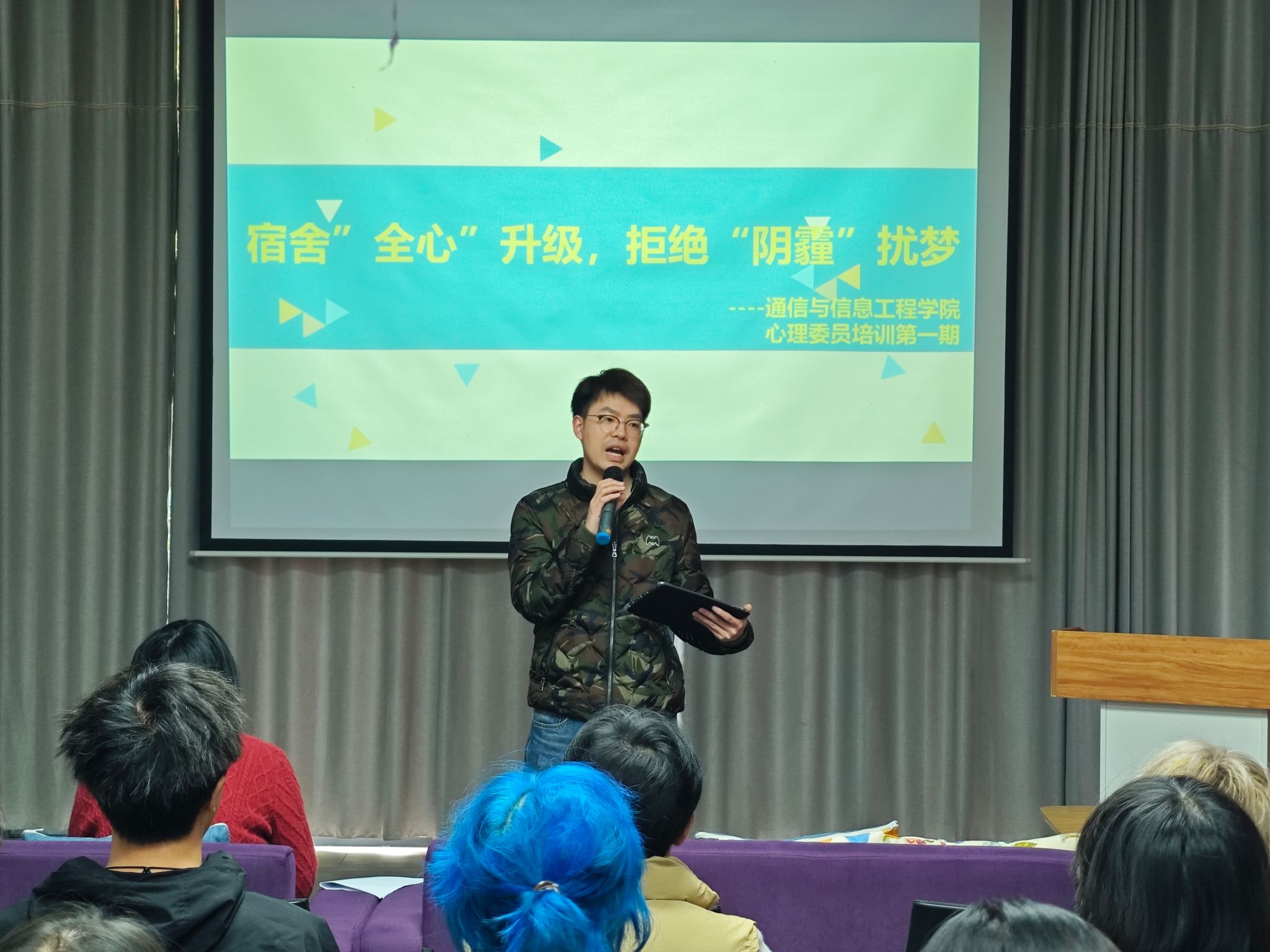 培训伊始,通信与信息工程学院陈颖老师特别强调了心委在班级心理健康工作中的关键作用,希望心委们能充分发挥桥梁纽带作用,及时发现并解决同学们在寝室生活中遇到的心理问题。