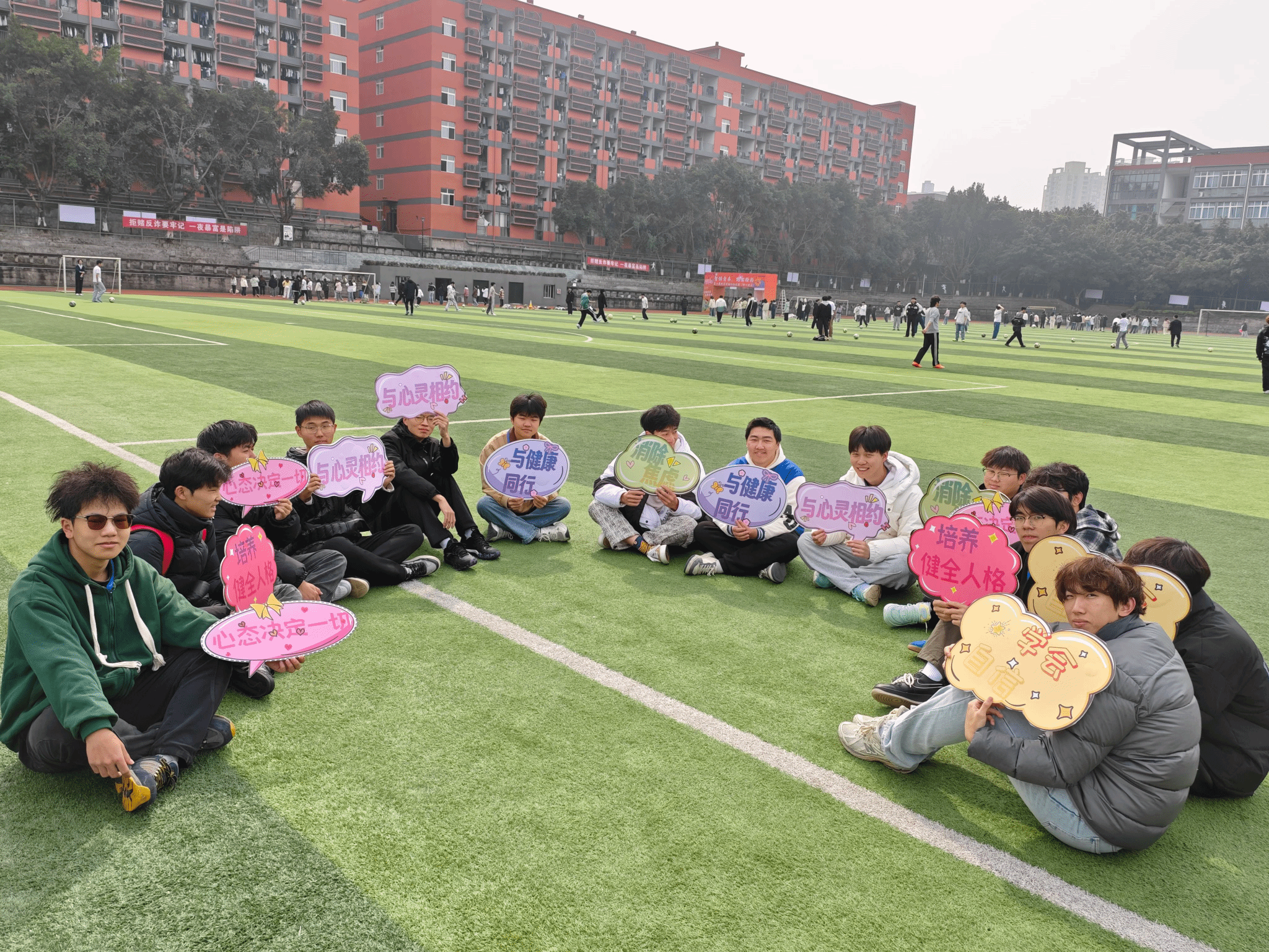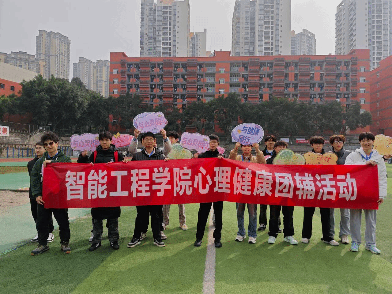 在快节奏的校园生活中,大学生群体常面临学业压力、社交焦虑与未来迷茫的多重挑战。为传递积极健康的生活态度,让学生感受户外运动的快乐,3月19日智能工程学院心理健康专项负责人谭英姿老师、学院体协指导老师唐宇在足球场共同举办了本次户外心理成长团辅活动。