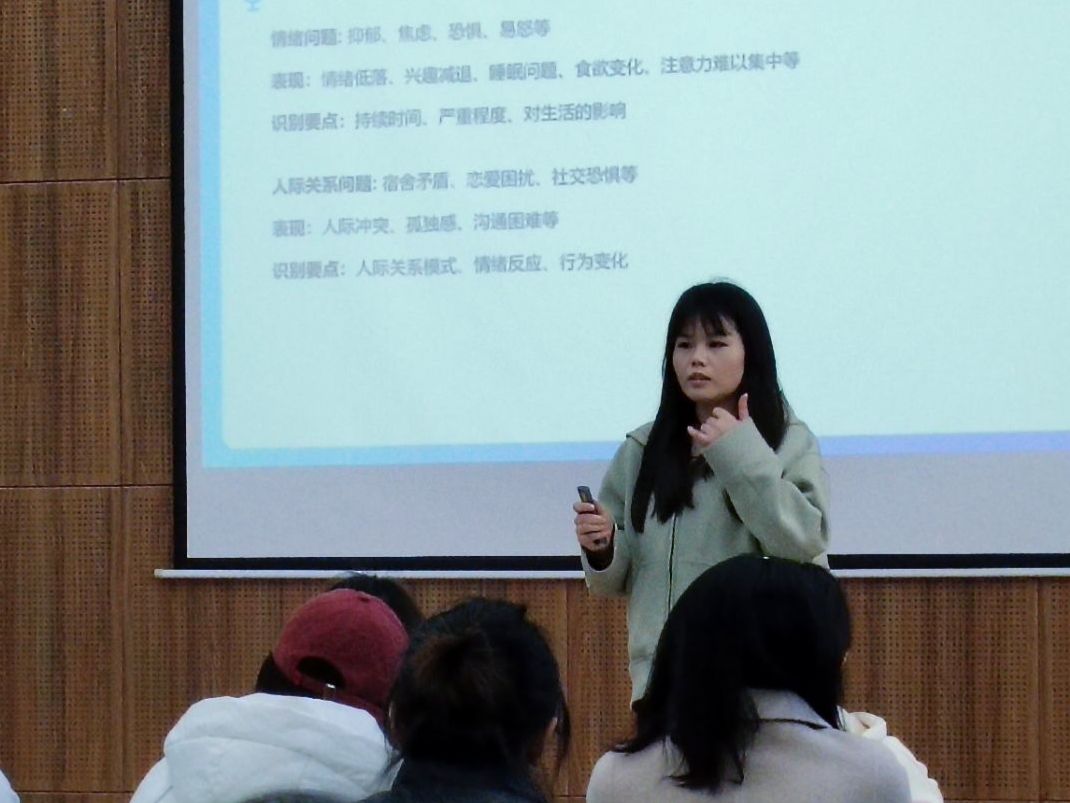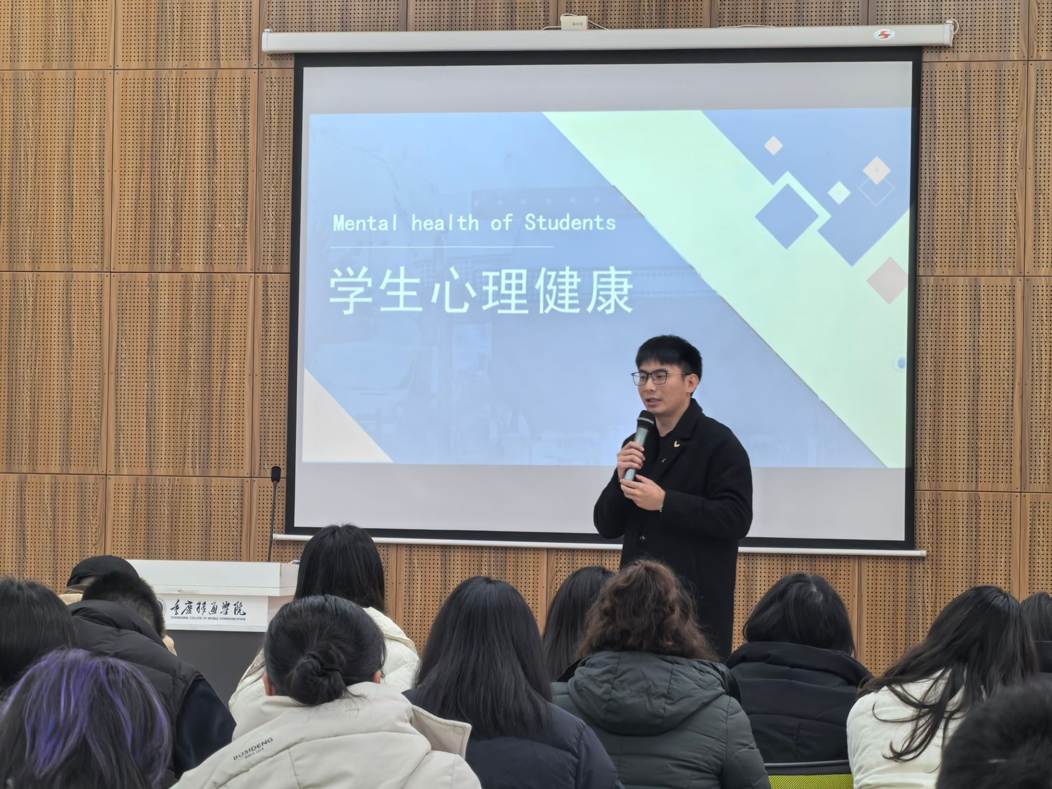 为提升教师队伍对学生心理危机问题的发现与处置能力,将关注心理健康意识融入教育教学,外国语学院联合学生办公室主任纪治阳老师和心理专项岗负责人阳果老师,分别为任课教师与异科导师开展了心理健康教育基础的知识培训。本次培训聚焦常见心理健康问题类型,详解问题学生处置及预约流程,旨在“学心知识,强处置能”,打造更具心理关怀能力的教师队伍,为学生身心健康成长筑牢保障,助力其在良好心理环境中茁壮成长。