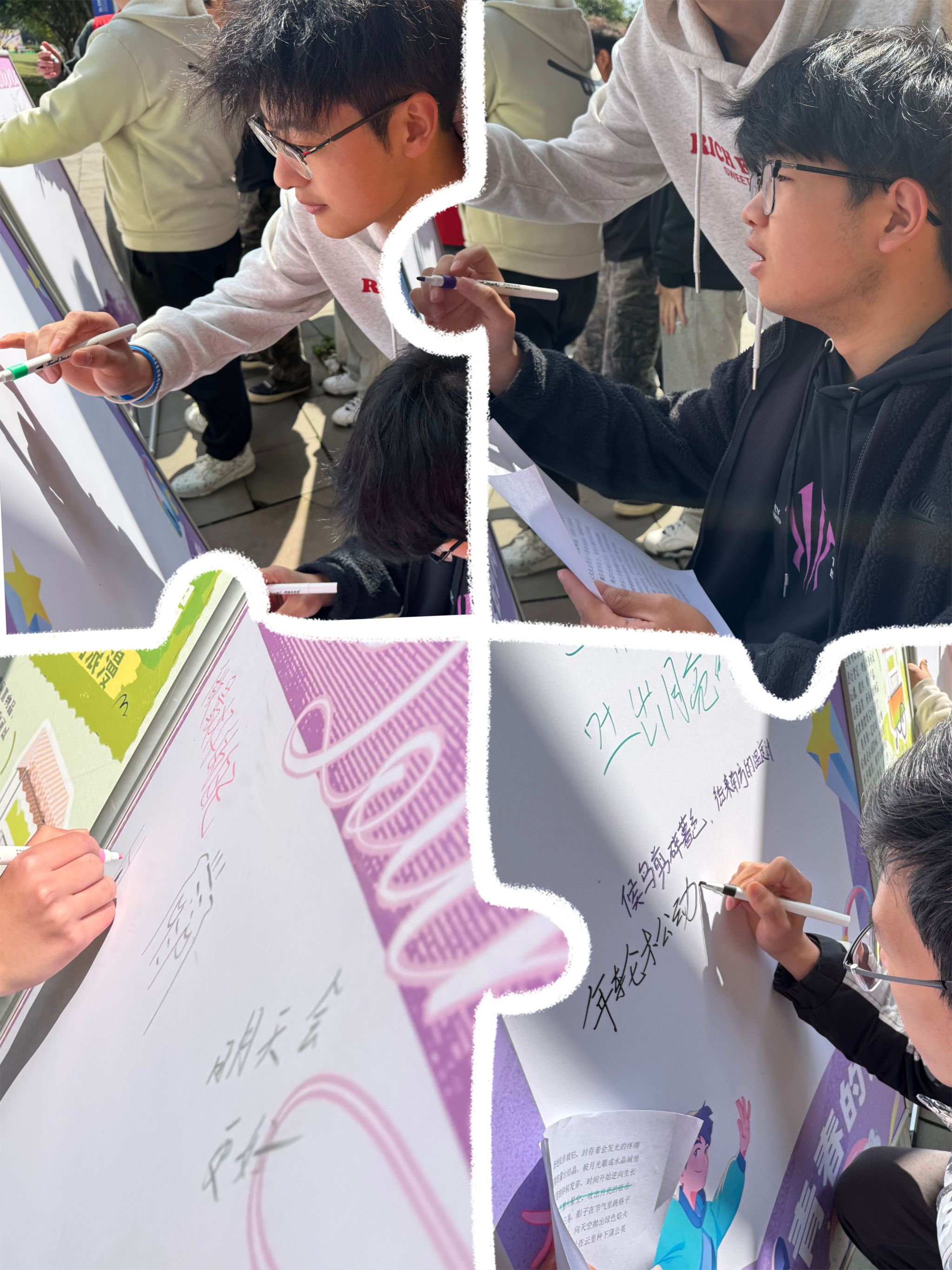 走进“给青春的诗”活动区。这里是情感与创意的天地,同学们拿起便利贴,写下心底最想说的话,那些或迷茫、或坚定、或温暖的话语,都被轻轻贴在第一块KT板上。