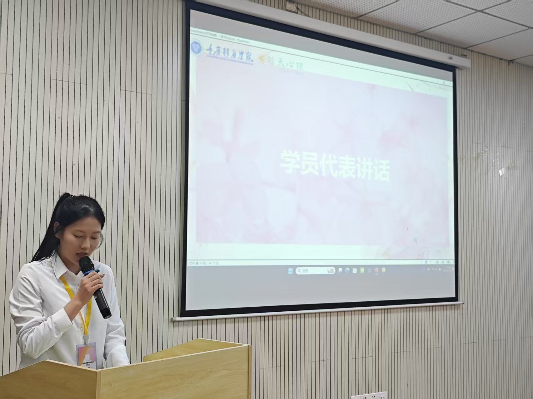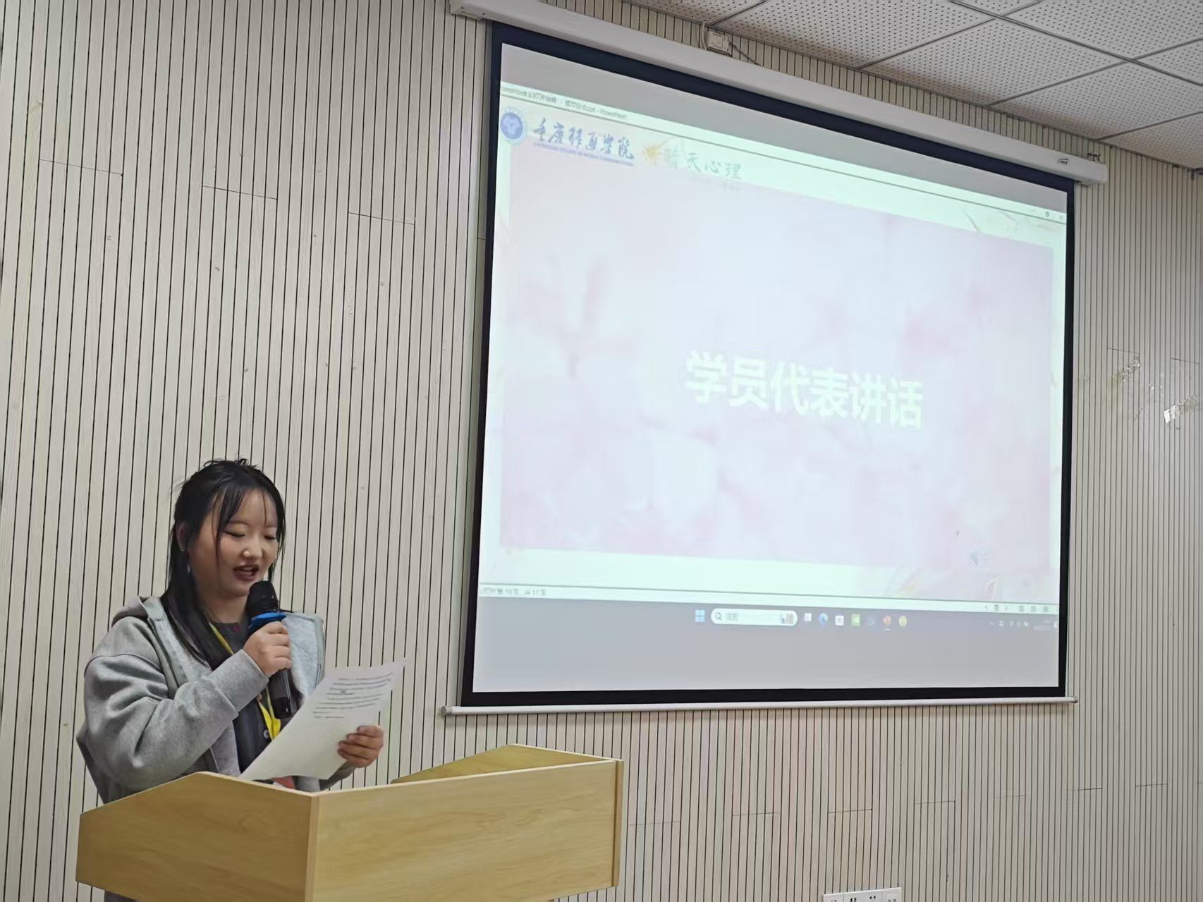 江子涵同学作为小学兴趣小组代表上台讲话,她讲述了对执教的向往和期望。黄雨婷同学作为艺术疗愈小组的代表上台讲话,她讲述了在接触到了心理疗愈之后自己的负面情绪都得到了消散。她讲述自己对于曼陀罗活动学习上的体验,感悟到有负面情绪的时候应该顺其自然。