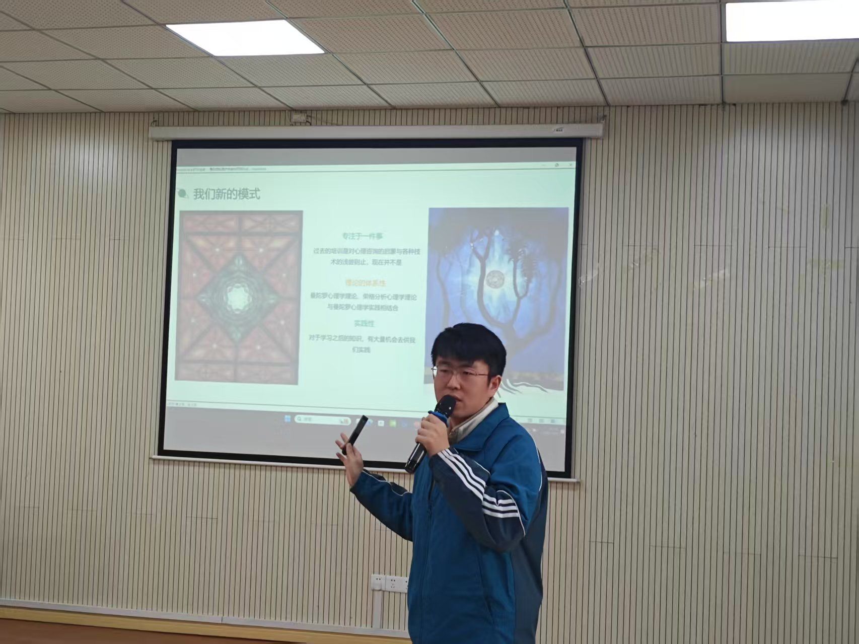 赵青煜老师作为今年晴天心理站新开辟的板块的--艺术疗愈小组负责人兼艺术疗愈小组课程的主讲老师,向同学们介绍了为什么要从以往的心理咨询师课程更改到现在的艺术疗愈。接着赵青煜老师向成员们介绍了艺术疗愈小组存在意义是依靠艺术来帮助我们疗愈我们自己的心理,艺术疗愈的本质是一种门类--音乐、绘画、雕塑、舞蹈等。赵青煜老师指出艺术疗愈就是要把我们的心理传播出去,一直到我们能够得到一些反馈。赵青煜老师为本次艺术疗愈小组定下目标:专注于只做一件事。接着老师用了两张曼陀罗的图片让众人观察他们的不同之处,很多同学都提出了自己的观点和见解。赵青煜老师指出曼陀罗可以帮助我们了解我们内在的无意识领域从而将我们内心非常混沌的部分展现在纸上。当然老师会将识别曼陀罗的技巧和知识统统地倾授给大家。最后主持人宣读了首届艺术疗愈小组的人员名单,艺术疗愈小组全体成员随后上台合影。