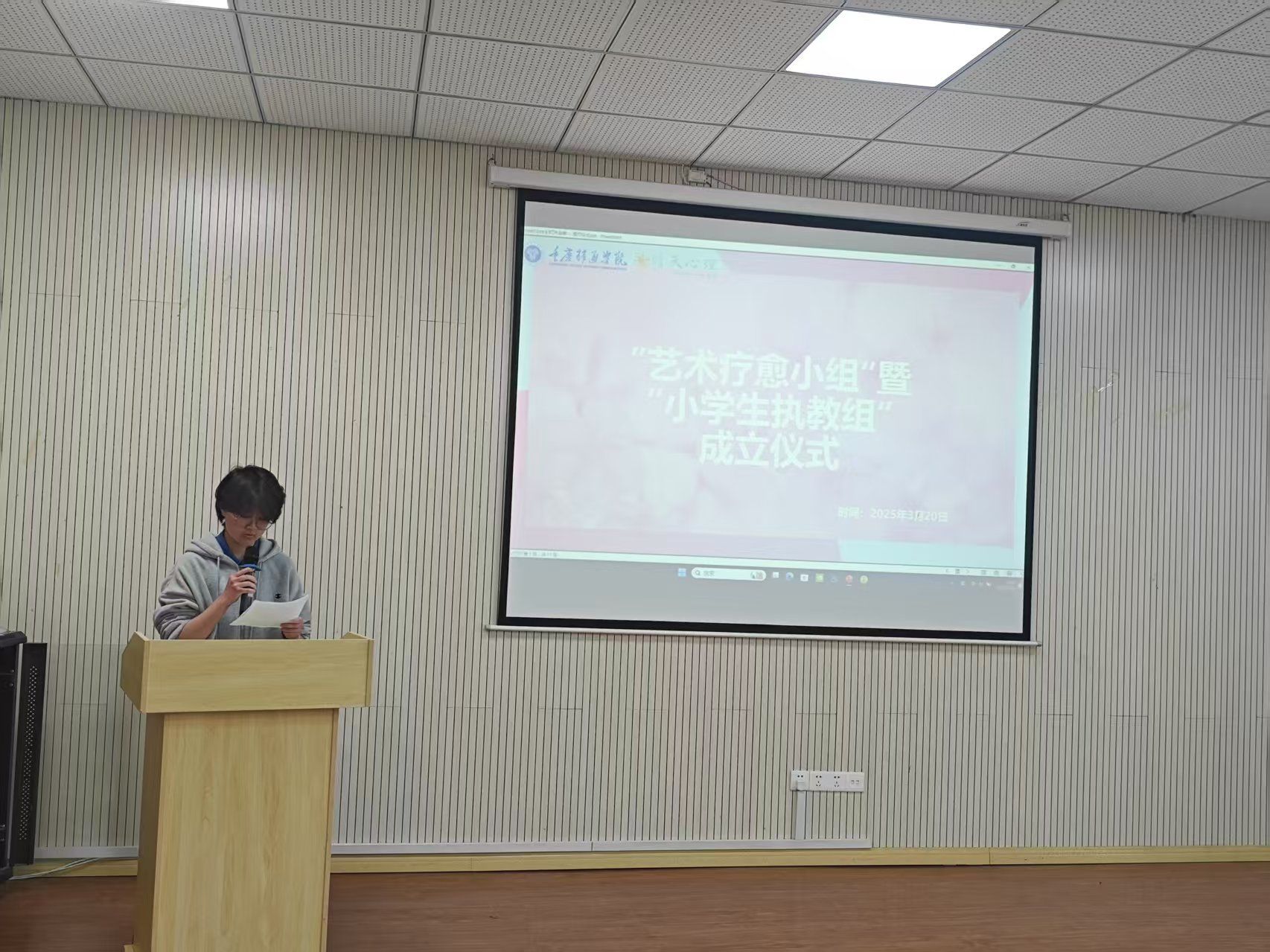 为响应社会多元化需求、践行社会责任,心理健康教育与咨询中心于2025年3月21日下午16时晴天心理站举行成立仪式,正式启动“艺术疗愈小组”和“小学生兴趣组”两个专项服务。本次会议参加者有心理中心工作人员、执教组成员及艺术疗愈小组成员。仪式由主持人赵翊麟开场,宣布活动正式开始。