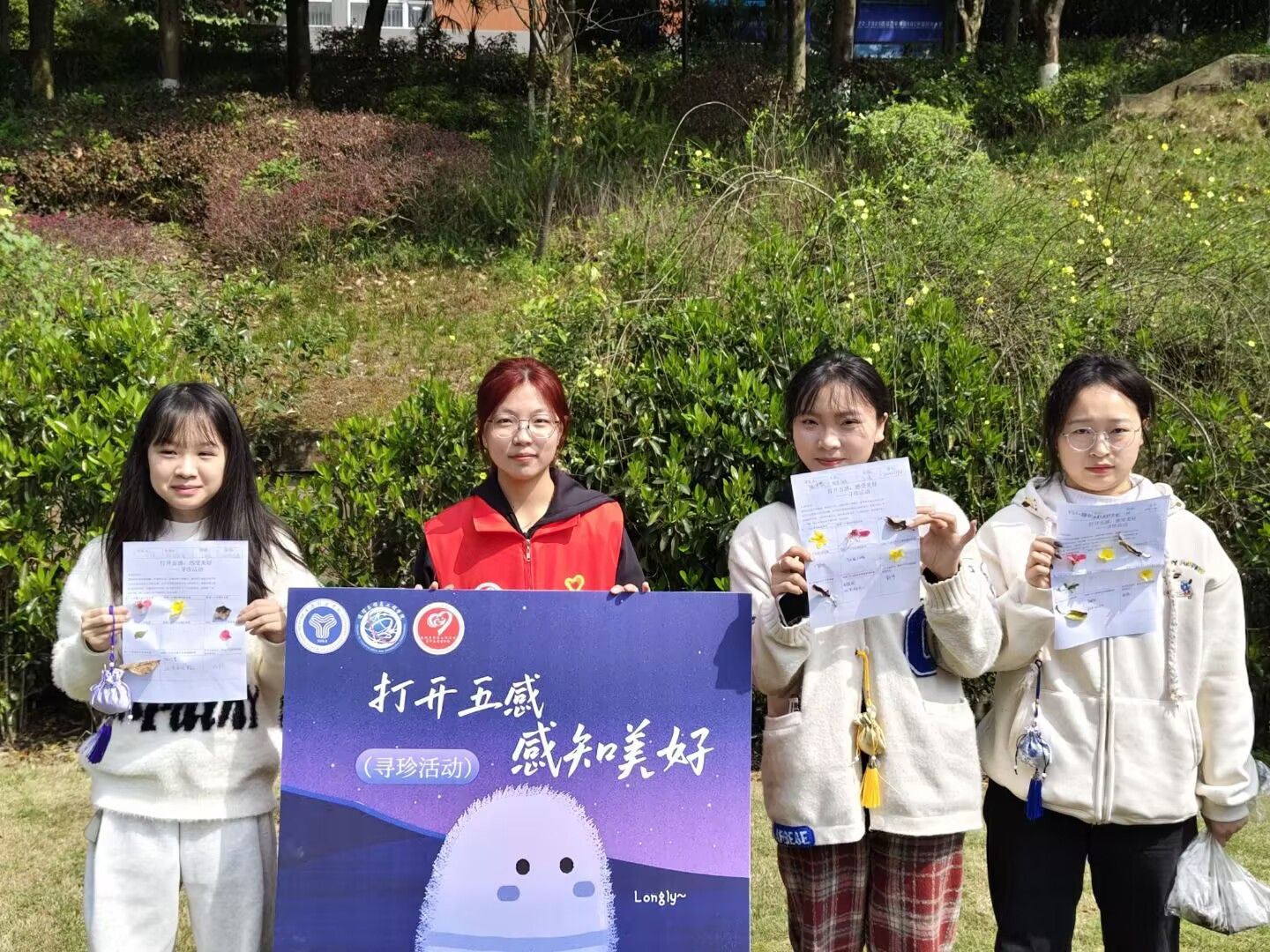 活动以创新的"五感寻宝"形式展开,巧妙引导同学们全面激活视觉、听觉、嗅觉、味觉和触觉,深入探索周围世界的奥秘。在生机盎然的双子湖草坪上,参与者们展开了一场别开生面的感官冒险: