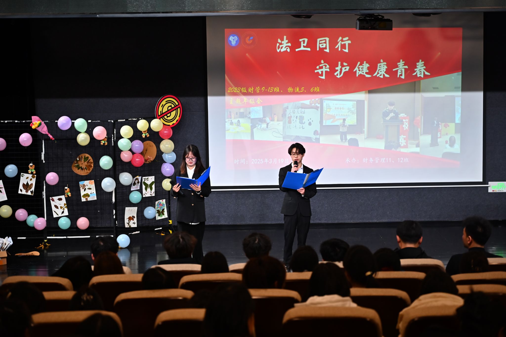 为深入贯彻法治教育理念,提升大学生的健康素养。淬炼商学院2023级财务管理11团支部与12团支部于2025年3月20日晚上19:00在六度空间黑匣子剧场举办了“法卫同行·守护健康青春”为主题的年级会活动。此次活动由辅导员孙成彬、校心理健康教育与咨询中心兼职教师金政杕共同参与,旨在通过系列趣味横生的活动,让法治观念与健康生活的理念在广大学生心中落地生根。