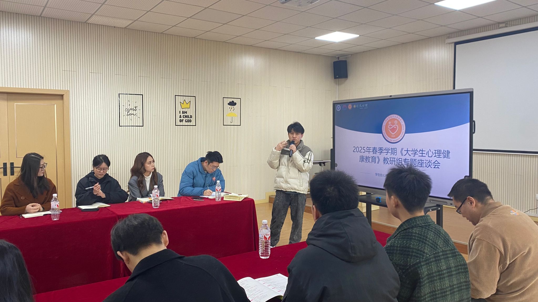 为进一步提升心理健康教育教学质量,优化心理咨询服务模式,2025年4月2日,2025年春季学期《大学生心理健康教育》教研组专题座谈会在合川校区心理健康教育与咨询中心团辅室召开。会议由心理中心专职教师邓昭财主持,心理中心主任田雨以及专兼职心理健康教育教师参会。