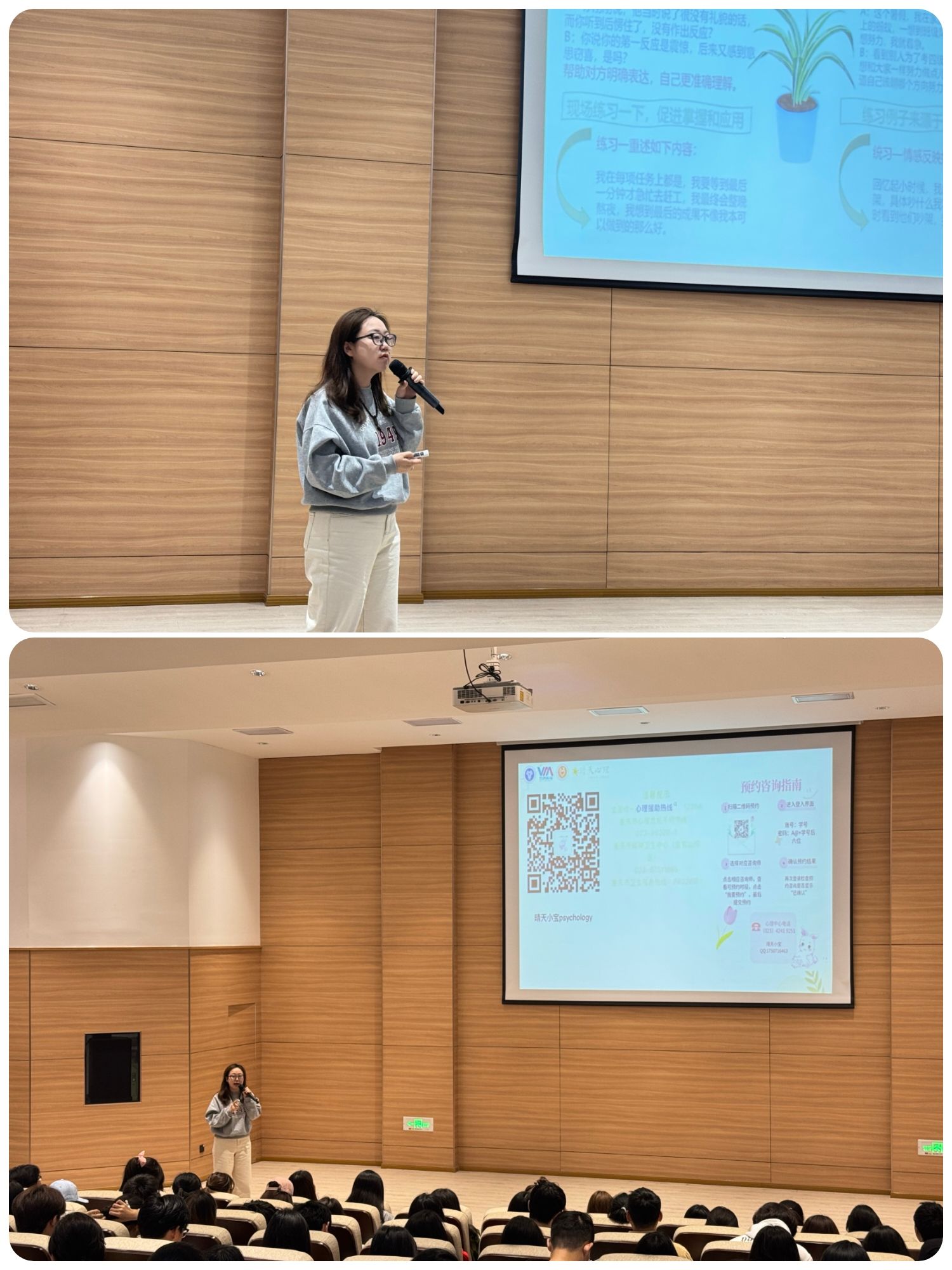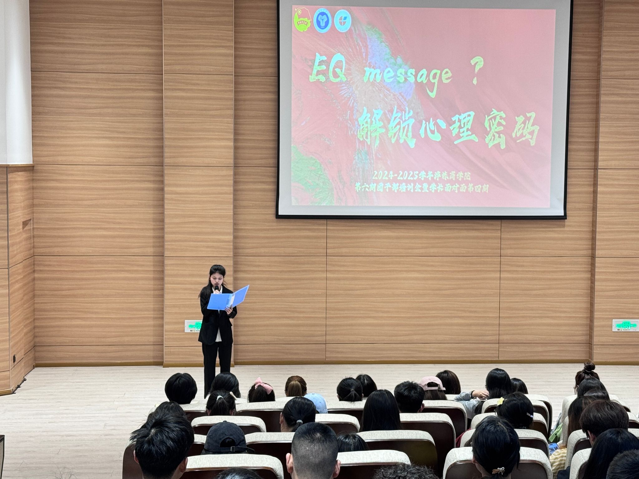 2025年4月9日,六度空间创梦空间内洋溢着青春的热忱与思维的碰撞,一场面向淬炼商学院班团骨干的“EQ message·解锁心理密码“心理健康专题培训在此展开。活动由校心理健康教育中心兼职心理教师梁倩主讲,通过沉浸式体验与实用技能传授,为120余名学生干部注入心理助人新动能。