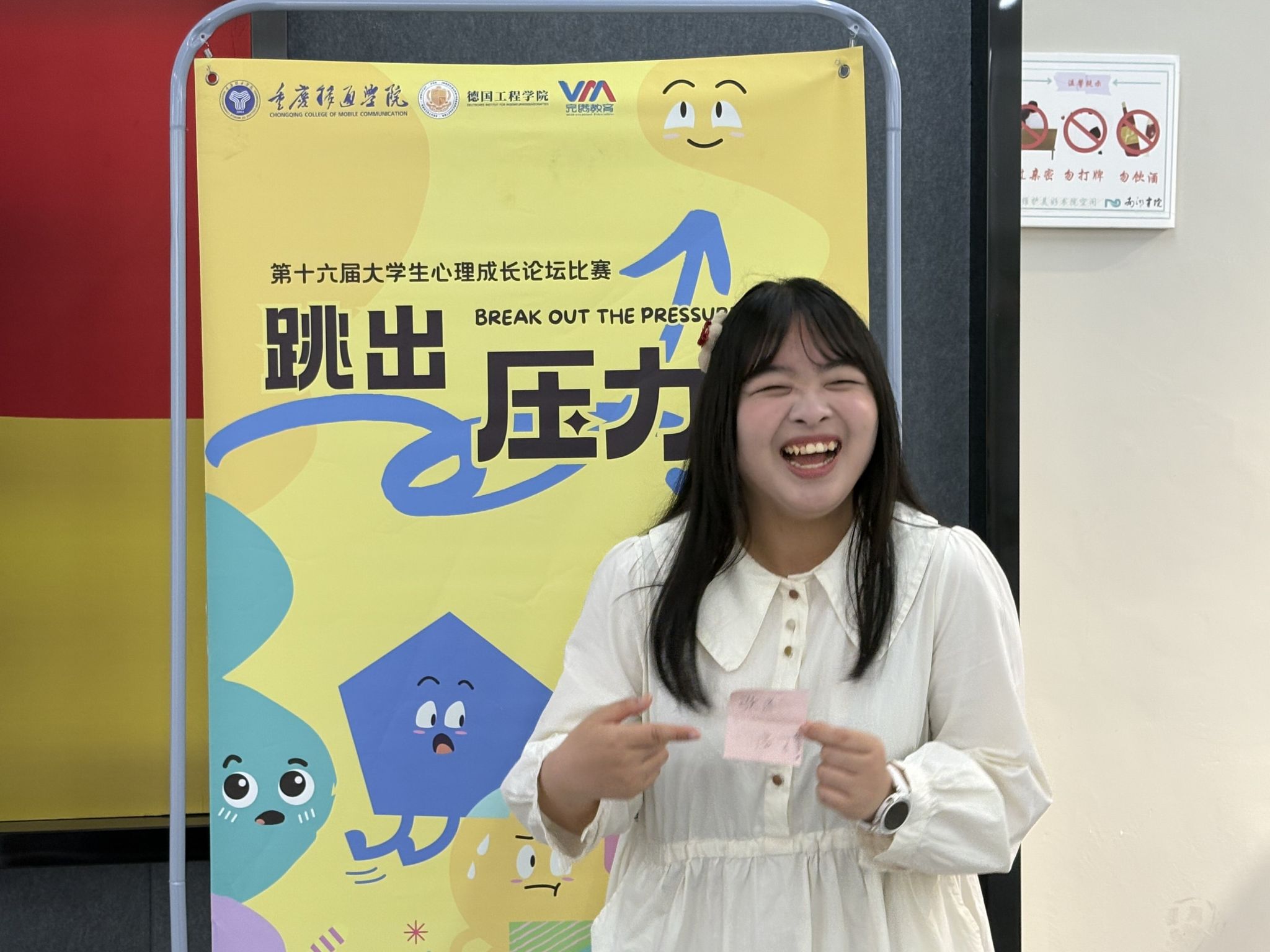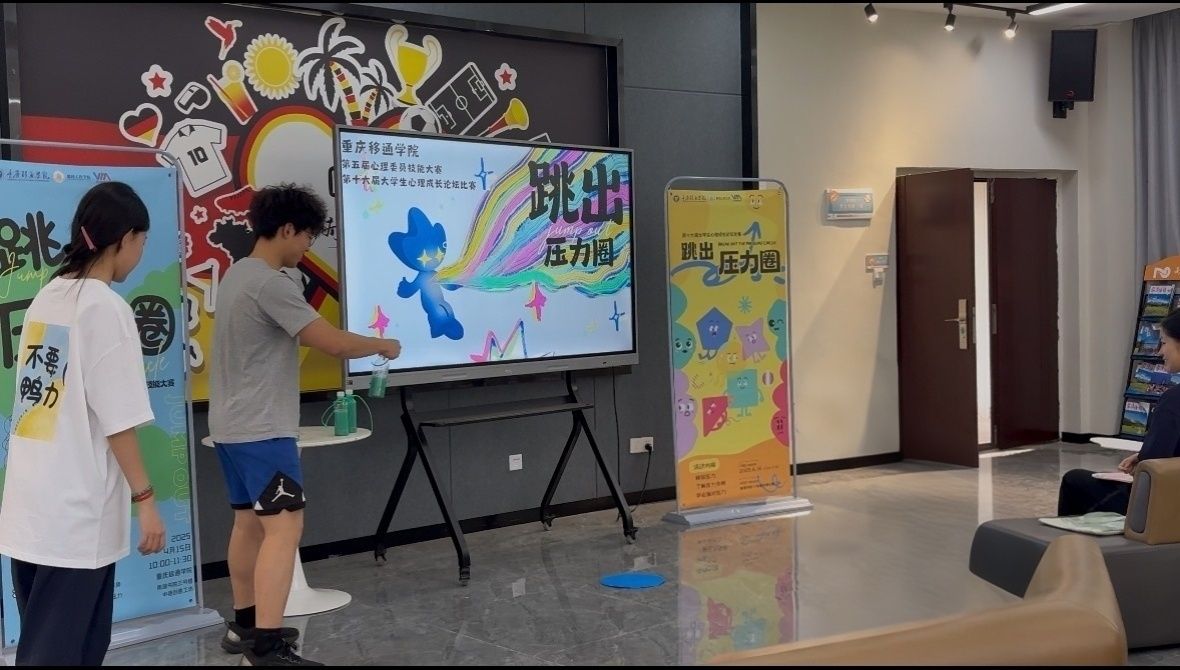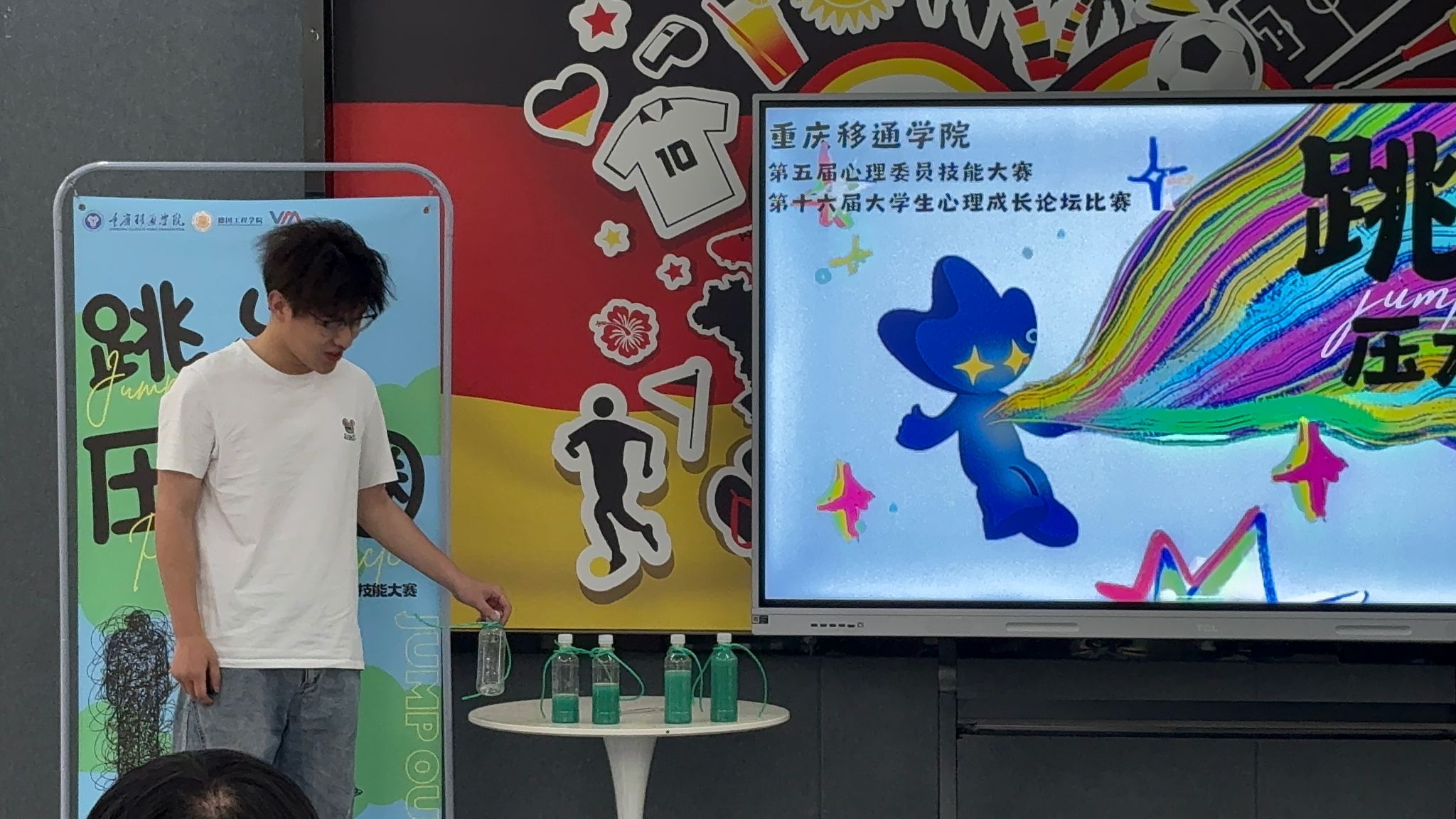 “负重前行” 游戏环节将活动推向高潮。同学们根据自身本周压力状况,选择相应的压力梯度瓶,借助绳子将其投向 “目标圆圈”。经过大家的尝试,装有少量 “压力” 的瓶子在投掷时更易靠近圆心,生动诠释了 “耶克斯道德森定律”,即适度压力有利于目标的达成。这也启示大家,若能巧妙利用压力,压力便能转化为前进的动力。