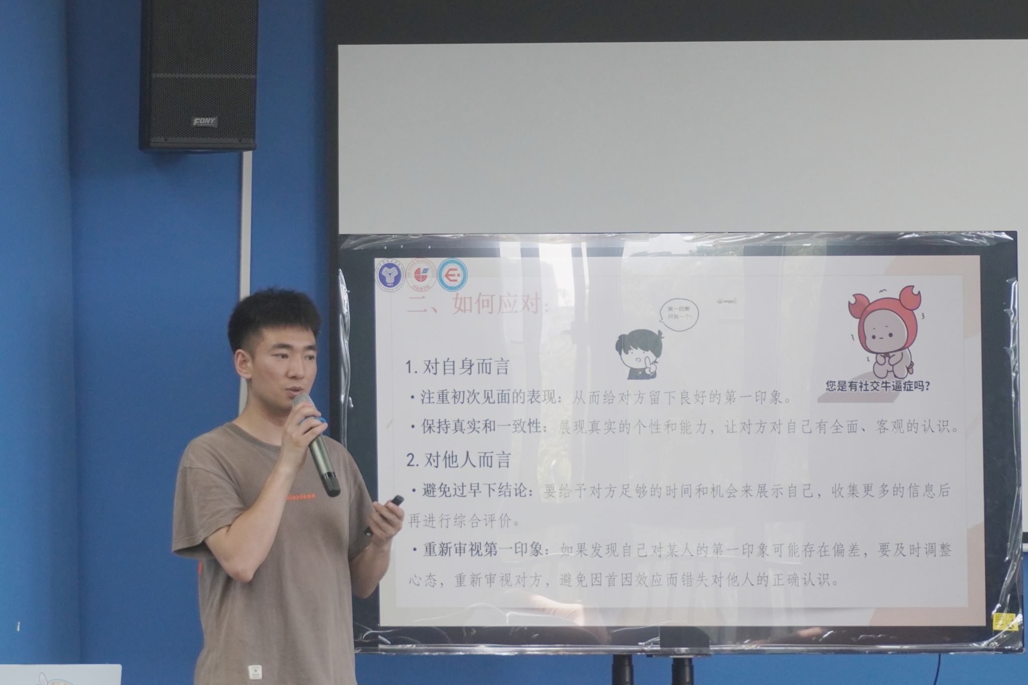 答疑环节,金政杕老师通过同学们的提问,对同学们学习、工作和生活方面的疑问做了详细的解释。金政杕老师强调在学习方面,可以利用奖励机制强化学习行为,形成“努力-奖励-动力”的正确循环;在人际关系方面,可以利用“首因效应”、“同理心”等功能,增强理解与信任,促进人际关系;在日常生活中,鼓励同学们培养多样化的兴趣、养成乐观豁达的性格、培养坚强的意志品格等,以提高自己的心理抗压能力,营造良好的人际关系,促进自我调整不良情绪。