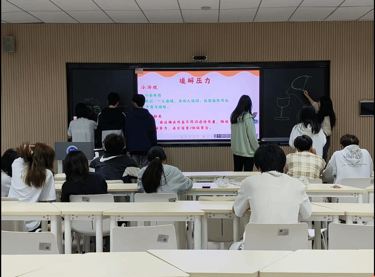 4月期间,远景学院各班级开展“排解压力·心理疏导”主题班会:2024级1班心理委员组织,通过分享备考经验、阅读图书、集体通过冥想缓解期中备考压力。2024级2班联合4班开展分享交流复习技巧等,进行呼吸和想象训练,超九成同学压力缓解,学习氛围转积极。2024级3班以游戏互动(你画我猜)与案例分享为核心,85%同学反馈缓解紧张,还助学生掌握疏解方法。2024级5班采用“游戏互动+经验分享+自由交流”,“压力炸弹传递”等环节让同学掌握减压方法,氛围更融洽。2024级6班同学踊跃分享学习与减压经验,氛围乐观融洽,心理委员持续关注同学状态。