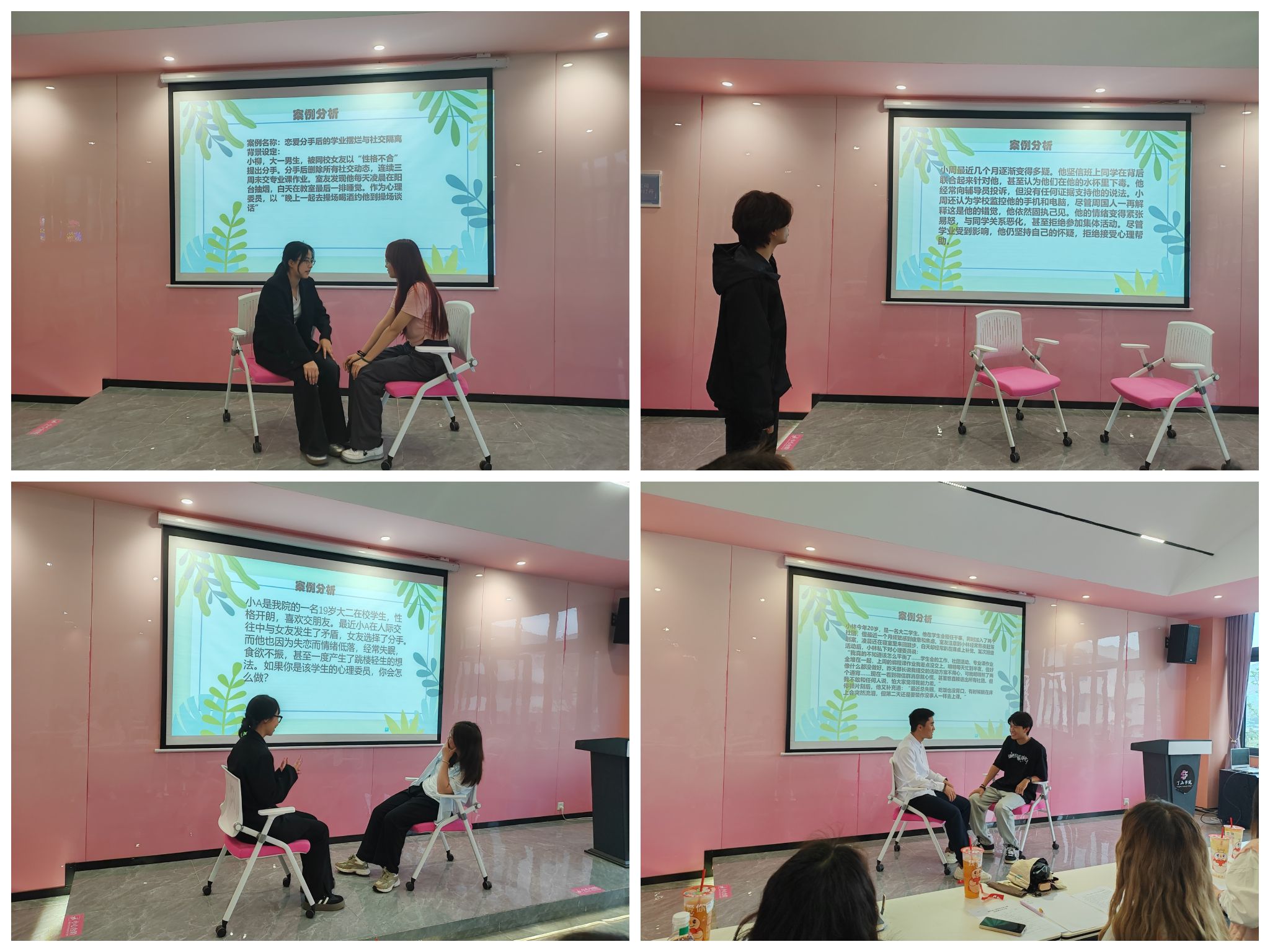 在紧张而有序的比赛进程中,尤其在专业技能这一至关重要的环节,各位心理委员迎来了极具挑战性的考验。参赛选手根据学业压力问题、人际关系问题、情绪调节问题、恋爱问题、环境适应问题等五个主题随机抽取案例,并对案例中存在的心理问题进行模拟会谈和案例分析。