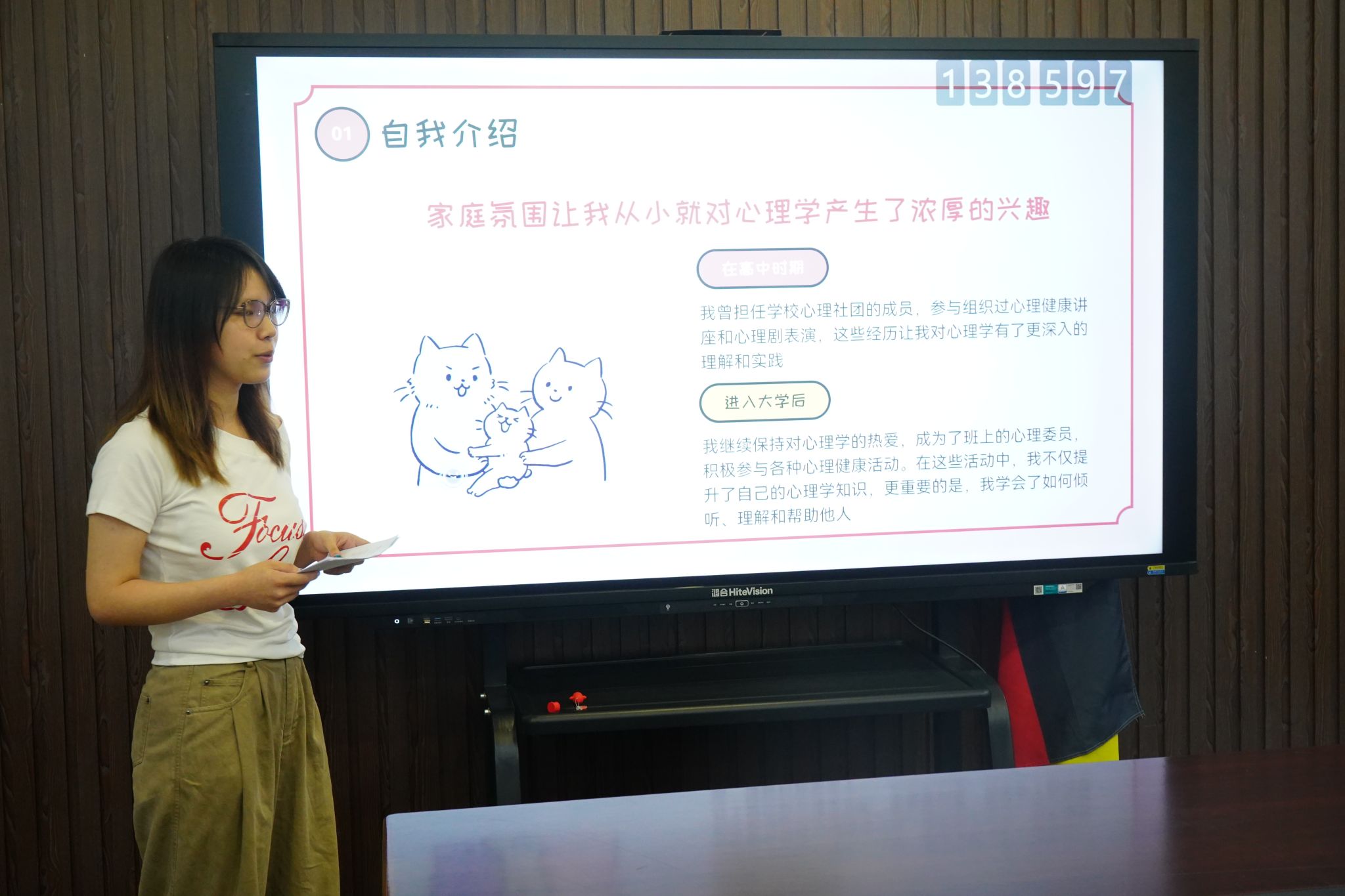选手谢宜霖聚焦 “心向阳光,逐梦前行”,从自身对于心理学的分析、活动流程设计到效果评估进行了完整展示。