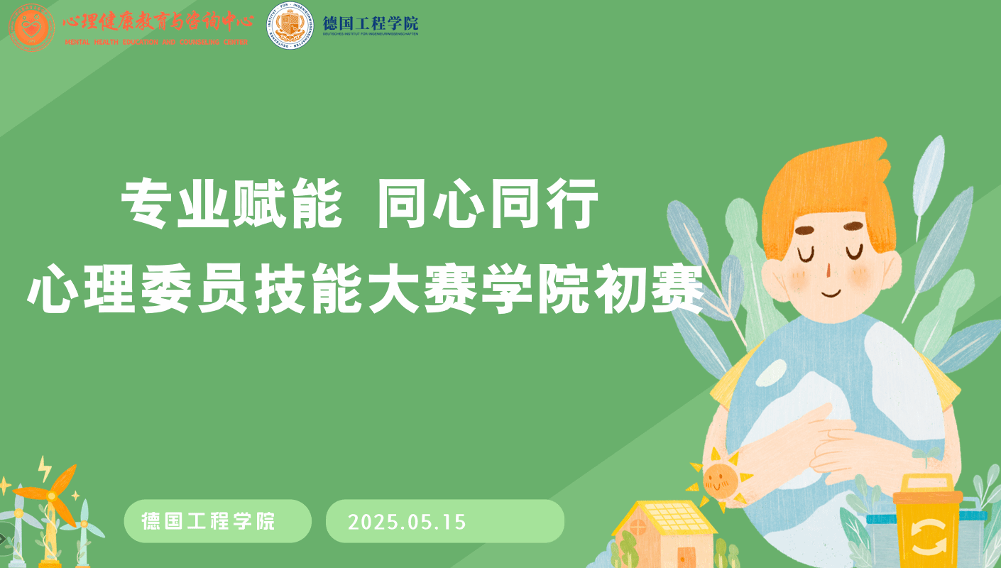 为深入贯彻学校心理健康教育工作要求,提升心理委员专业素养与服务能力,5月15日,德国工程学院顺利完成“专业赋能,同心同行” 第五届心理委员技能大赛学院初评工作。