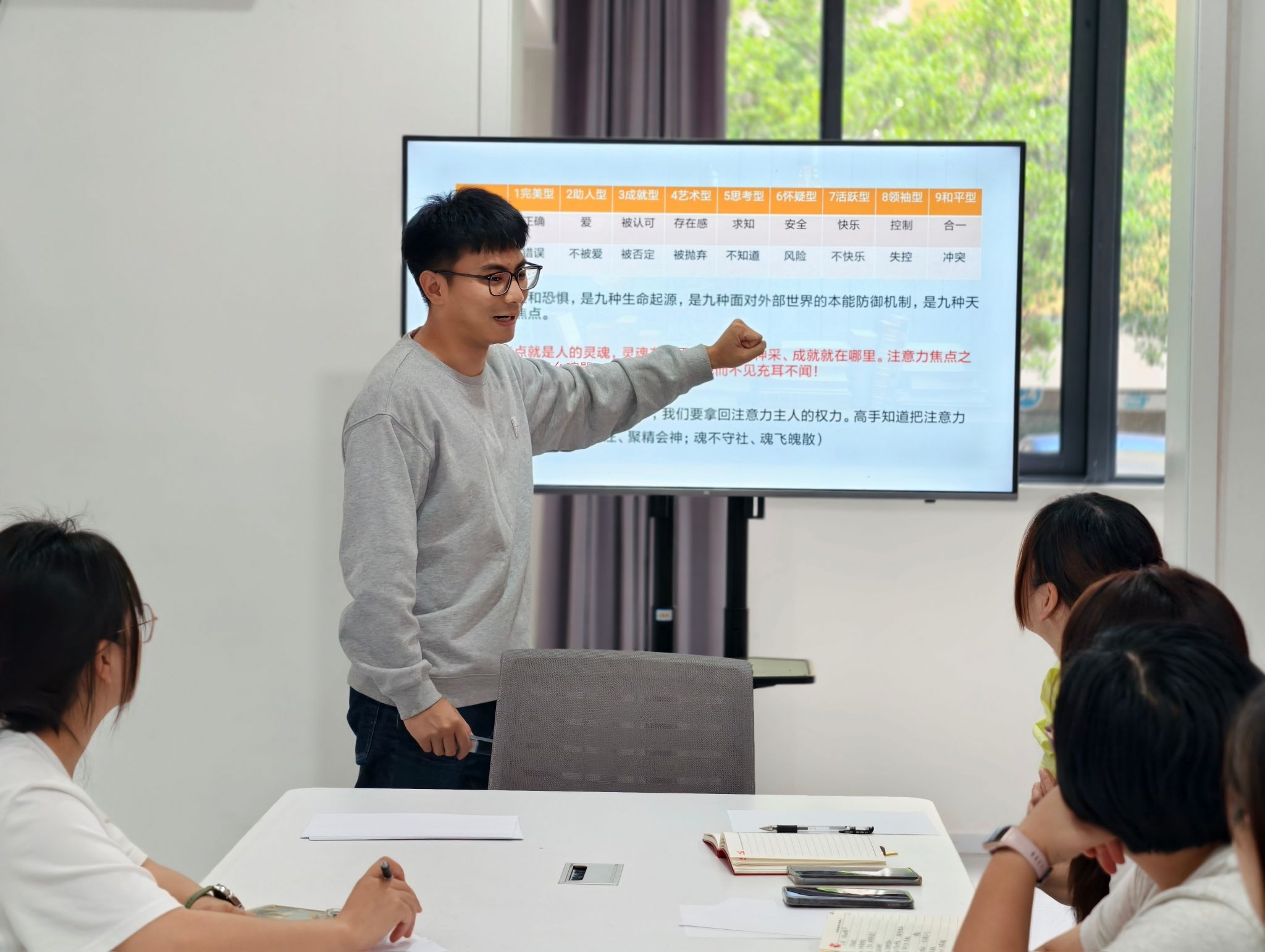 淬炼商学院于6月13日上午在花果书院举办“识人育人”辅导员专题培训。心理健康中心金政杕老师详细讲解了九型人格完整版180题测评系统的科学原理和使用方法,通过测评-解读-应用三个环节,帮助辅导员掌握这一专业工具。培训特别设置了案例实操环节,以真实学生测评报告为例,演示如何通过数据分析锁定主型人格、优势类型和待发展领域。学工副院长刘薇唯表示:“这次培训让我们在选拔班委、心理辅导时有了更科学的依据。”