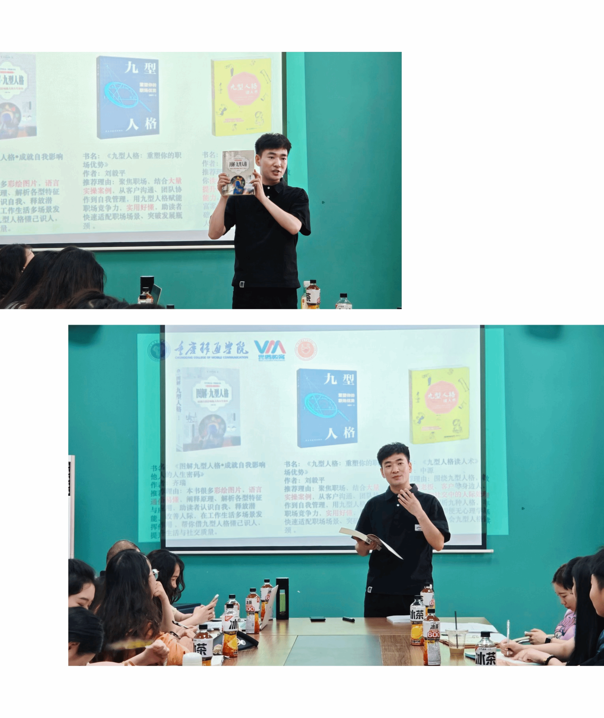 六月的校园洋溢着自我探索的蓬勃朝气,各学院围绕“九型人格”主题开展了一系列富有创意的特色活动。通过专题讲座、互动研讨、案例分析等多样化形式,师生们共同解码人格密码,将心理学理论与育人实践深度融合,为完满教育注入新活力。从专业测评到情景模拟,从解牌演示到团体辅导,丰富多彩的活动形式让抽象的人格理论变得生动可感。现就各学院特色活动总结如下: