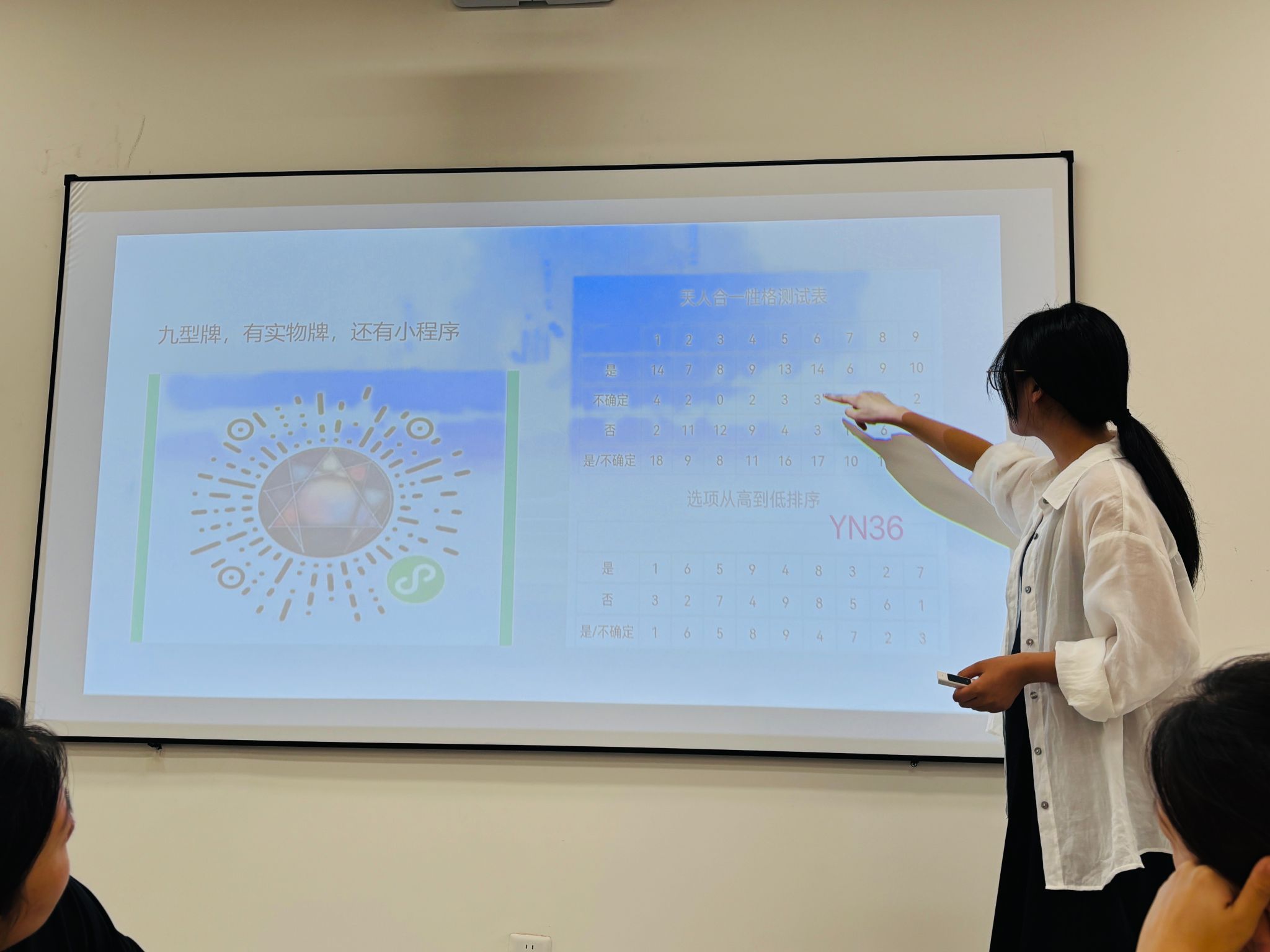 6月24日,外国语学院在北山书院举办的“九型人格解牌会”令人耳目一新。心理专项岗阳果老师将抽象的心理学理论转化为直观的卡牌解读,通过人格原型卡、情绪光谱卡等专业工具,生动展示各类型特质。在“学生干部培养”专题研讨中,老师们尝试用九型人格理论分析班委团队构成,优化分工方案。新入职辅导员张老师表示:“这种可视化教学让复杂理论变得简单易懂,我明天就能用在班级管理中。”活动还建立了人格案例共享云文档,促进经验交流。