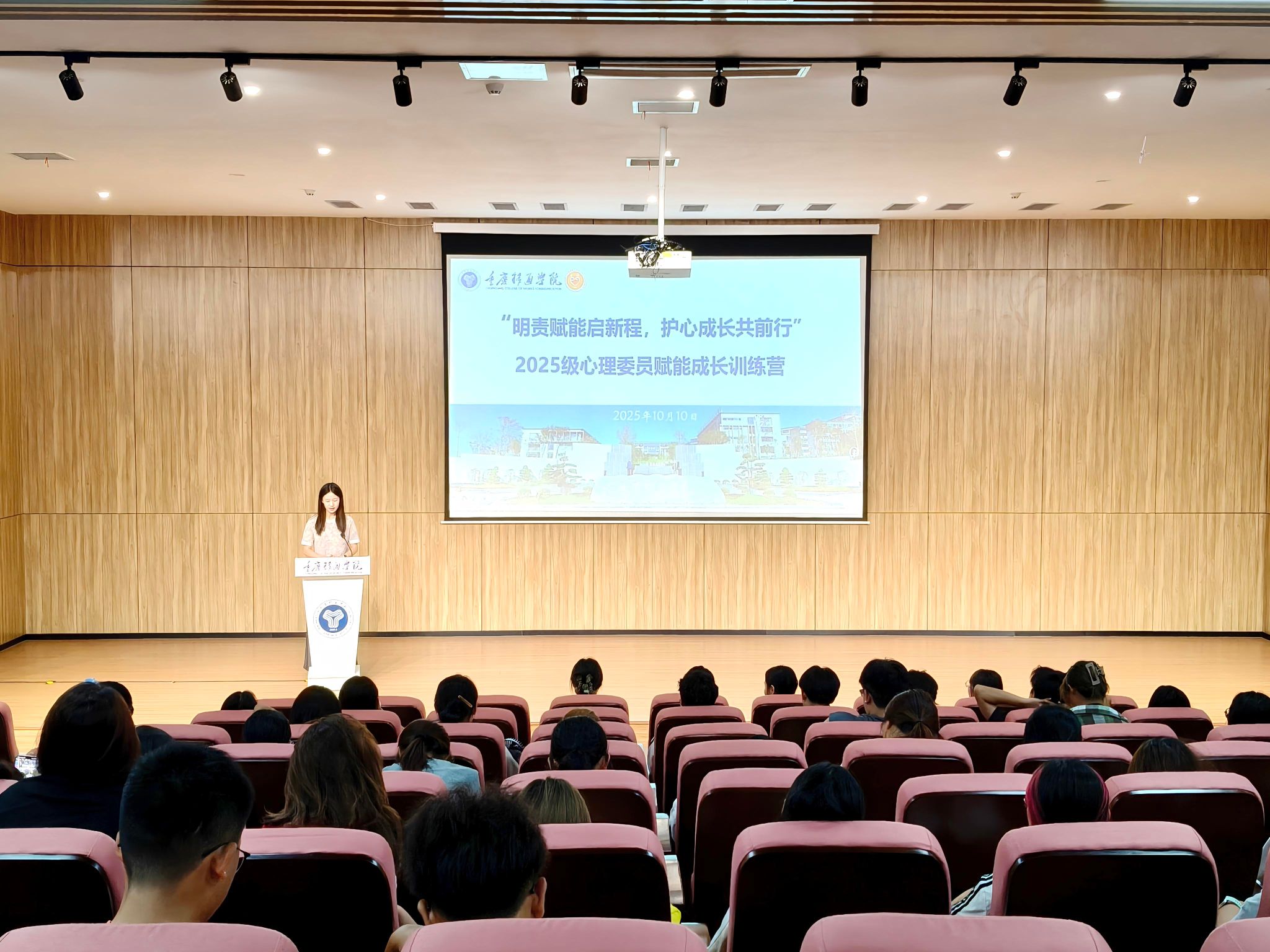 为强化大学生心理健康朋辈支持体系,学生处心理健康教育与咨询中心于2025年10月10日14:30在贤者楼131阶梯教室召开2025级心理委员赋能成长训练营开营仪式暨第一期培训。本次培训由专职心理教师王雪燕老师主持,特邀重庆市精神卫生中心桂竟涛主任指导,2025级全体心理委员参加。