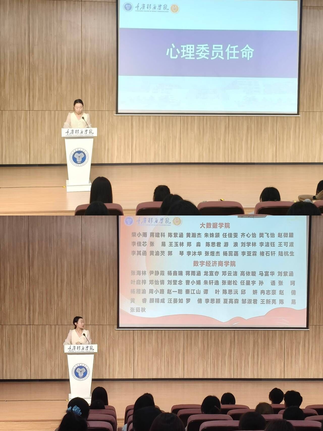 王雪燕老师着重强调心理委员在校园心理健康工作中的关键作用,鼓励大家以专业能力守护同学心灵。心理中心林红主任开启2025级心理委员任命工作。她锚定“责任心、共情力、懂基础心理知识”三大标准,宣读218名经严格选拔的心委名单,寄语众人做好“心灵守护者”。心委代表岳莉以“责任、担当”为核心的发言,满含热忱与承诺,触动在场每一个人。