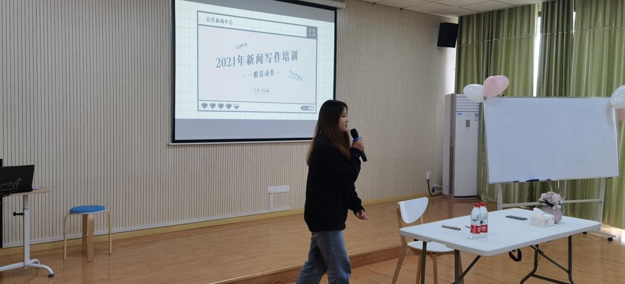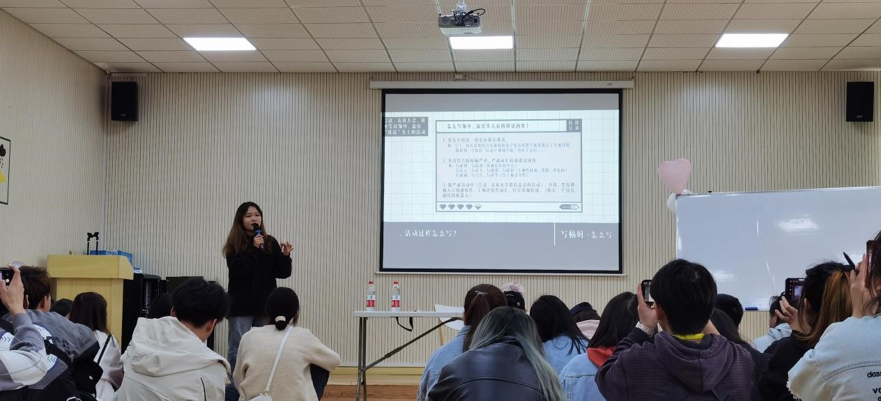 为提升全体干事的新闻稿撰写能力,晴天小宝第一期新闻稿培训会于4月7日下午在晴天心理站团辅室召开。会议由我校新闻宣传中心程靖媛老师主讲,参会人员为晴天心理站全体干事及名师课堂志愿者协会及共计60人。
