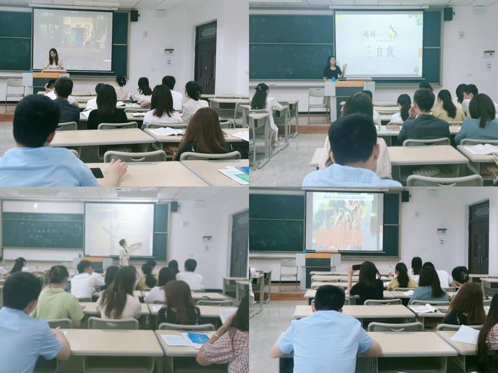 试讲过程中,游荟平老师抛出问题“什么是心理健康教育”引起思考,而后从心理健康的含义,特征等方面展开了细致的讲解;邓艳老师利用自身经历生动地讲述“把握情绪,培养情商”的重要性以及可行的方法;刘林林老师和王颖利用有趣的视频,生动的例子,很好地引入了课程的主题--悦纳完善自我;周靖鱼老师结合大量古诗词,用一种新颖的角度讲述了“学海无涯‘苦’作舟--我的学习管理”……虽然老师们都接触心理健康课程短暂,也非科班出身,但是他们精神饱满、仪态端庄、台风稳健、课程生动,展示出丰富的知识储备和良好的教学风范。