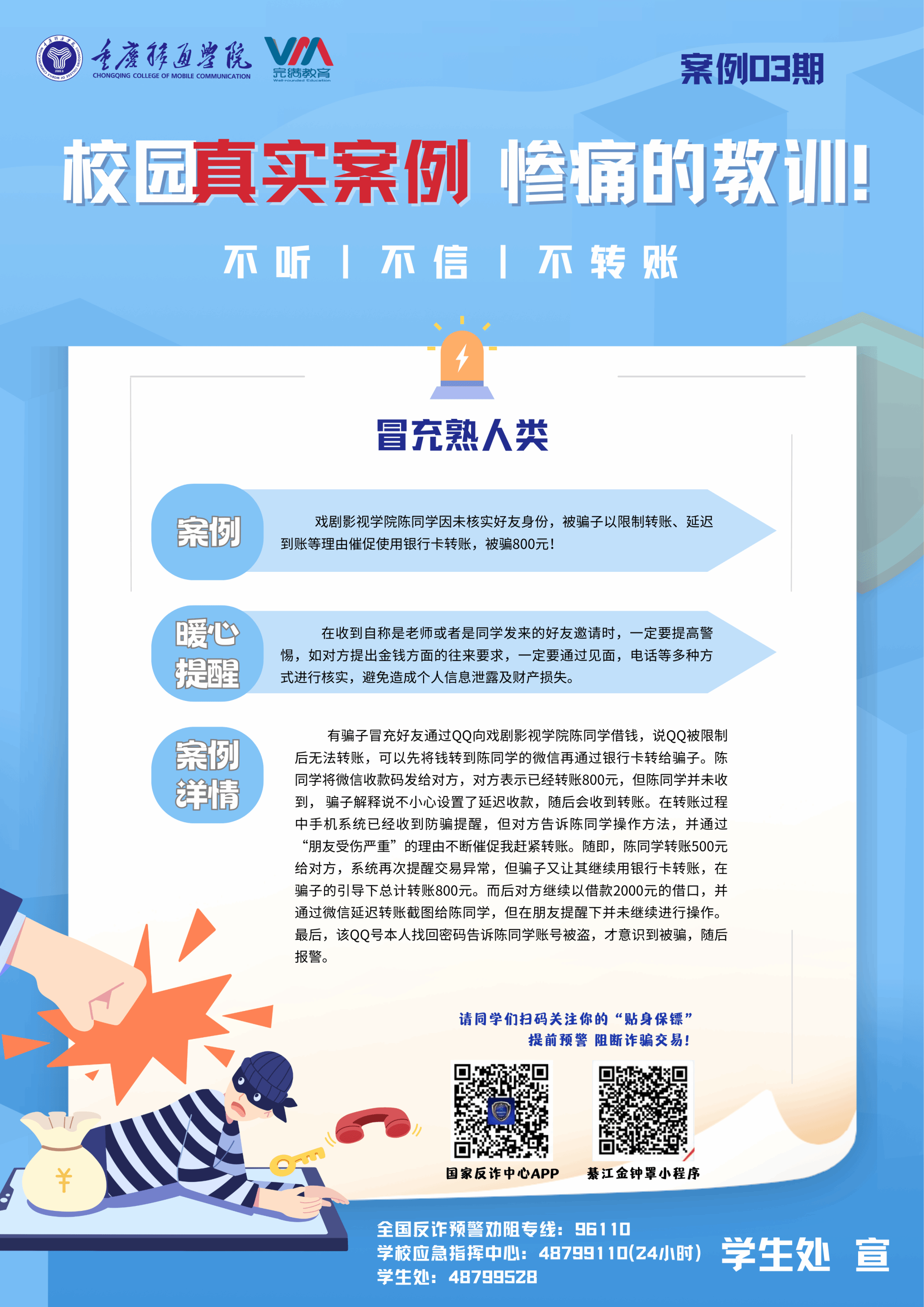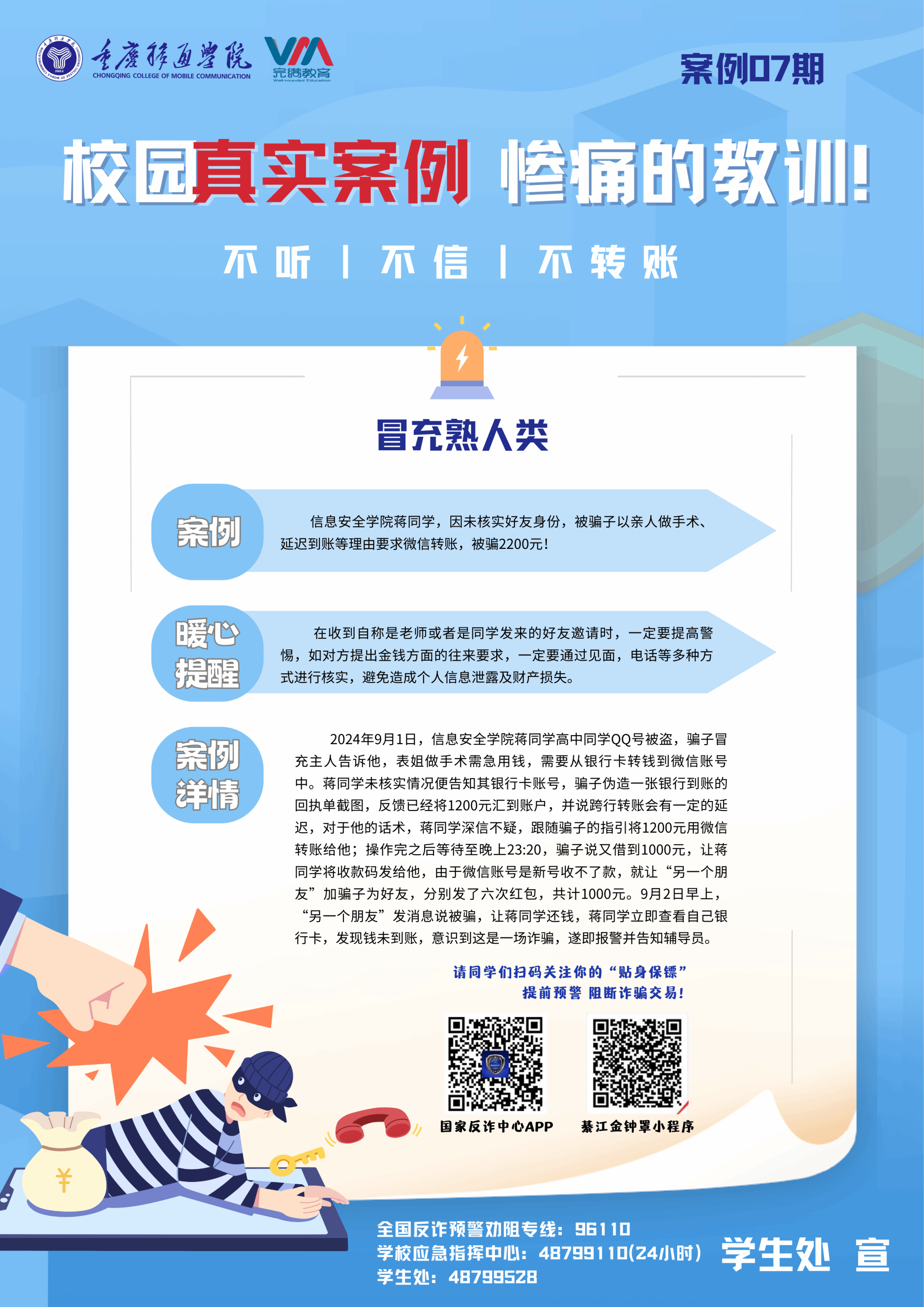 暖心提醒:在收到自称是老师或者是同学发来的好友邀请时,一定要提高警惕,如对方提出金钱方面的往来要求,一定要通过见面,电话等多种方式进行核实,避免造成个人信息泄露及财产损失。