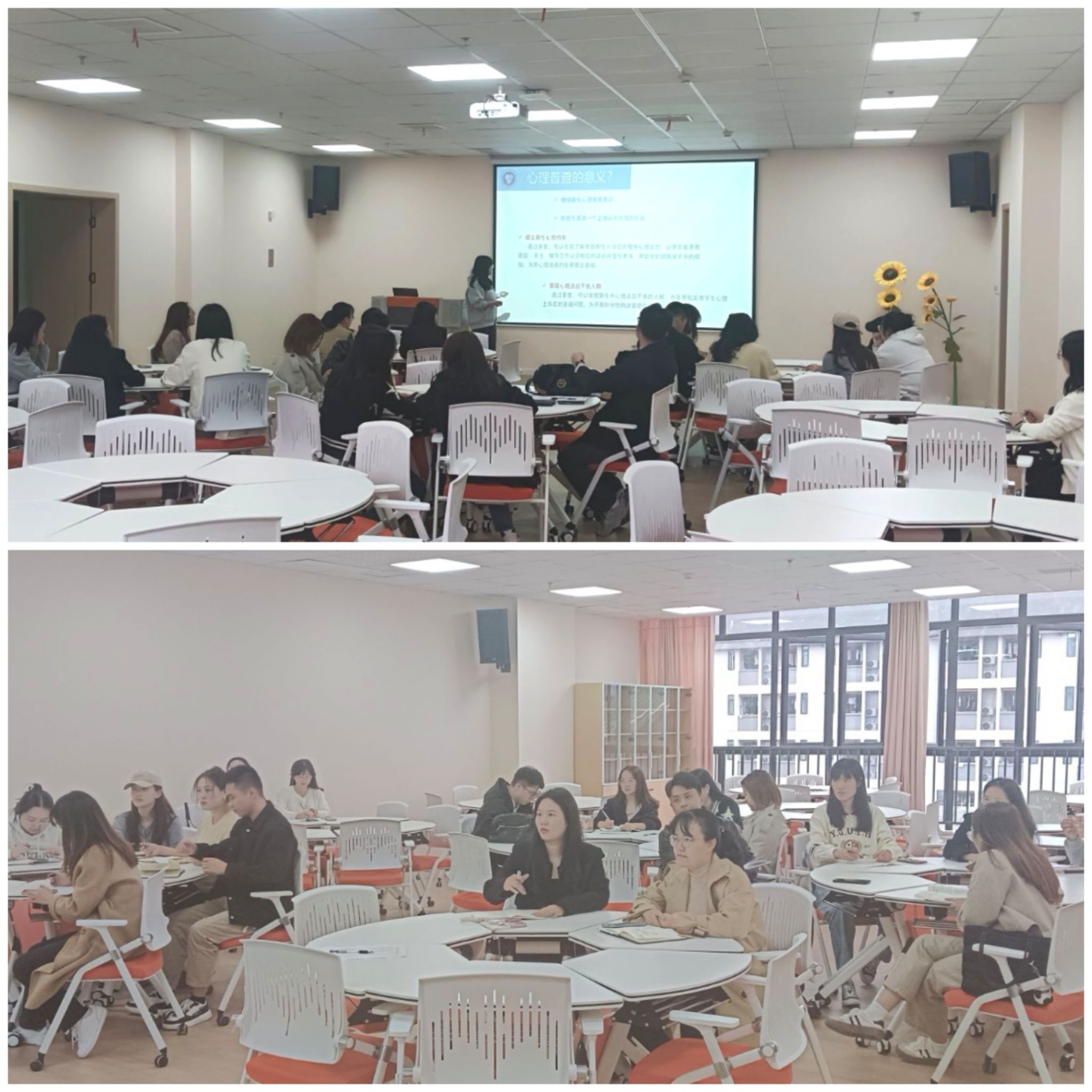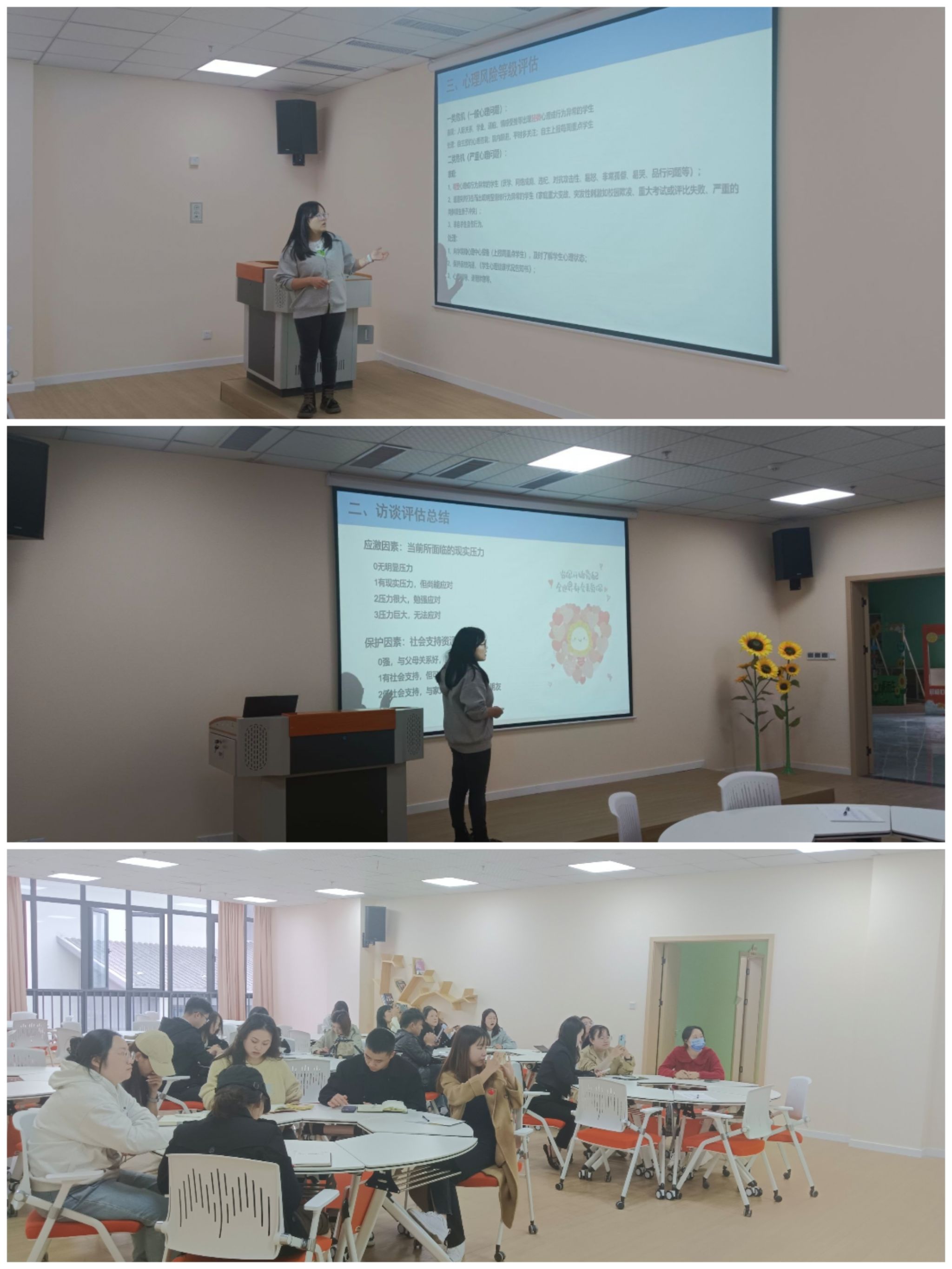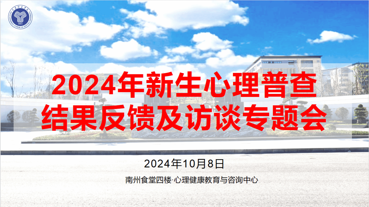 为更好地帮助辅导员老师对学生心理普查测评结果的理解和对学生心理健康问题的认识,有效提升辅导员应对学生心理健康问题精准识别和有效干预的能力。学生处心理健康教育与咨询中心(后面简称心理中心)于2024年10月8日16:00在南州食堂四楼心理中心团体辅导室组织开展了2024年新生心理普查结果反馈及访谈专题会。本次会议由心理中心专职教师侯茜主持,2024级全体新生辅导员参加。
