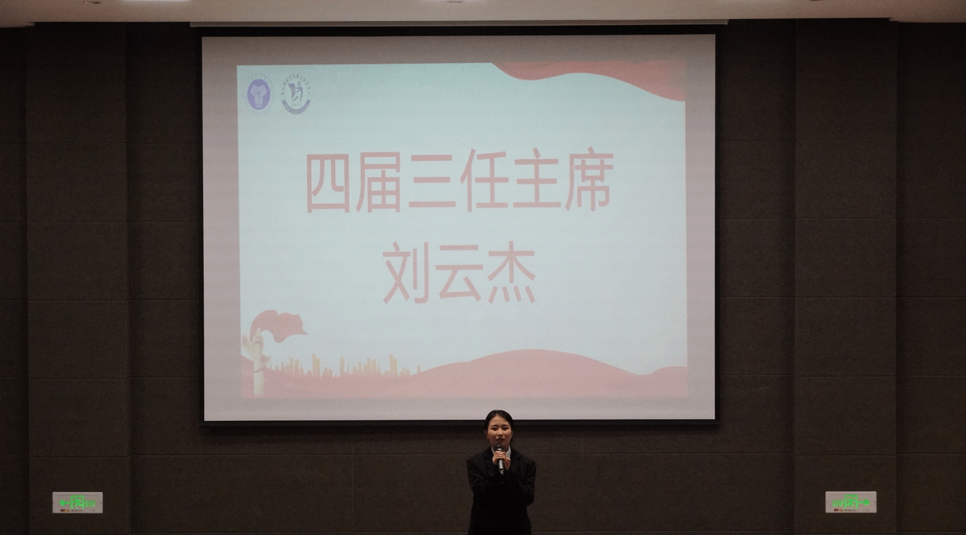 薪火相传,生生不息,伴随着阵阵热烈的掌声,四届三任的三位主席将象征着勤工精神的旗帜传递在四届四任的主席团手中,旗帜挥舞在空中,那飘扬的姿态满是骄傲和自豪,它似乎唤醒了勤工学子们内心的热爱和对未来的憧憬,让现场气氛无限高涨。伴随着热烈,四届四任的主席们也纷纷表达了她们对于勤工的热爱与在勤工未来的规划。