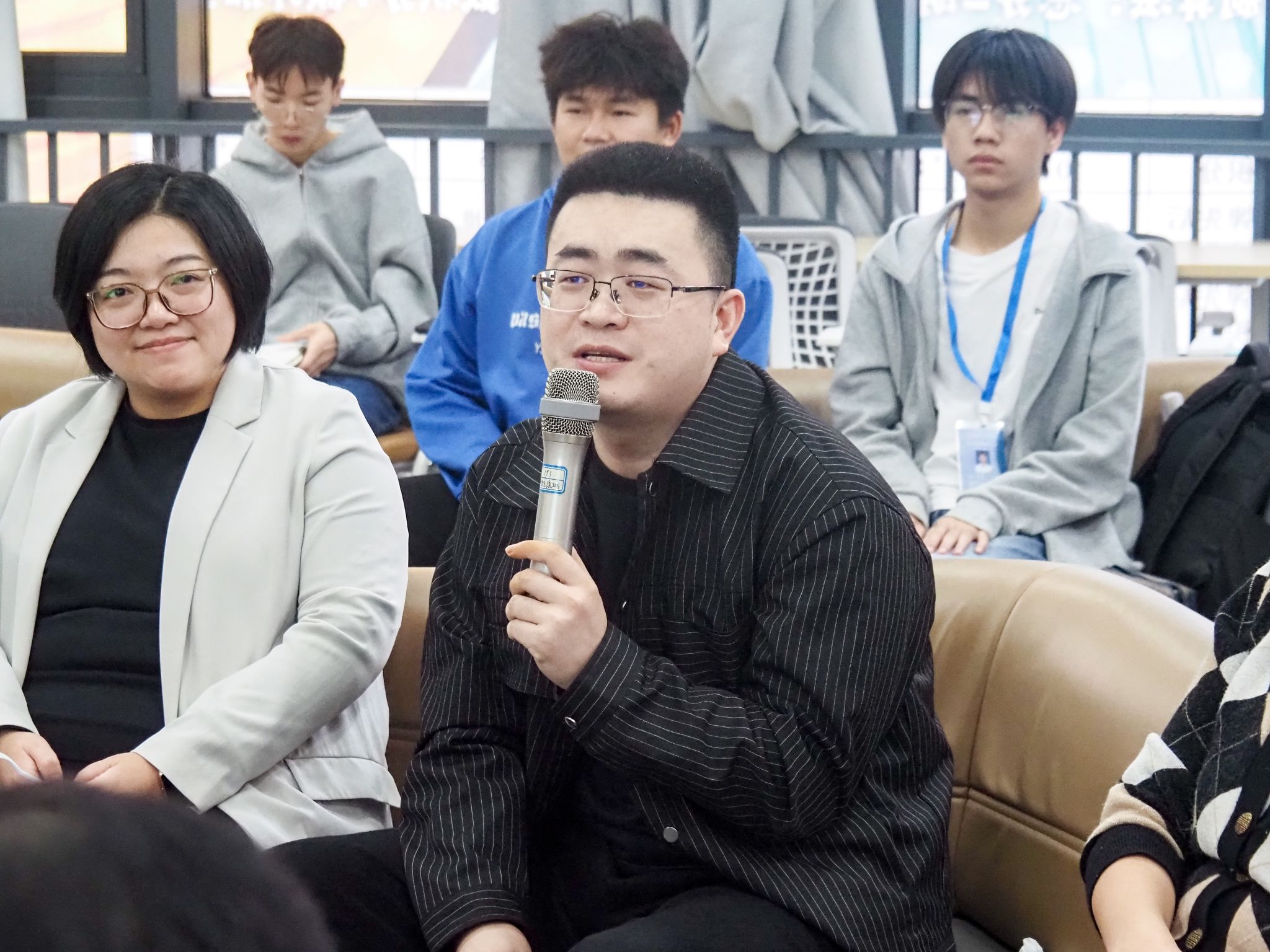 随后,现场教师就转训内容进行了深入交流。新入职辅导员代表艺术传媒学院的徐冉老师深感国防教育的重要性与紧迫性、国家安全的复杂性与挑战,表示自己将肩负起培养国家未来栋梁的重任,对学生做好思想教育引领。智能工程学院国防版块专项工作杨铭老师谈到,此次培训不仅增强了她的国防意识,更激发了自己为学校国防教育贡献力量的决心,也对国家调整征兵政策打开了新的思路和想法,以后也将结合学院工作实际,将国防教育融入学生工作当中,引导学生树立正确的国防观念。通信与信息工程学院学工办主任苟凡铖老师感悟到作为教育工作者不仅要传授知识,更要培养学生的爱国情怀与国防知识,让他们珍惜来之不易的和平。智能工程学院学工办主任刘桃老师则针对当前国际形势,提出应引导学生正确看待并培养他们的全球视野与理性思维。最后,现场学生代表也从自身的角度分享了对国防教育的理解与期望,明白了作为新时代大学生肩负着一定的责任,要增强国防意识,努力学习知识技能,将来在不同岗位为国防相关事业贡献自己的力量。