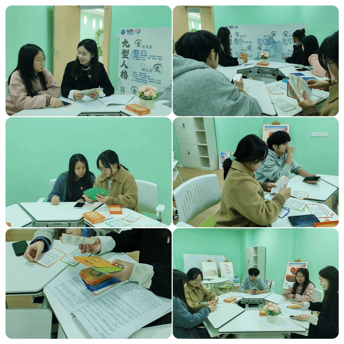 与此同时,在朋辈互助空间举办的“九型人格解牌”活动,王雪燕和侯茜老师用自己的专业知识为老师们带来了别样收获,他们纷纷表示在解牌过程中发现了隐藏的自身人格优势,并找到了补齐人格短板的方向。同时,老师们还可以进行心灵唱吧、VR设备体验、体感仪、各类放松椅等心理设备的体验。活动最后,老师们一起分享甜点果切并畅谈自己在活动中的想法和感受,借味觉刺激促进多巴胺分泌,为老师们送上满满幸福感。