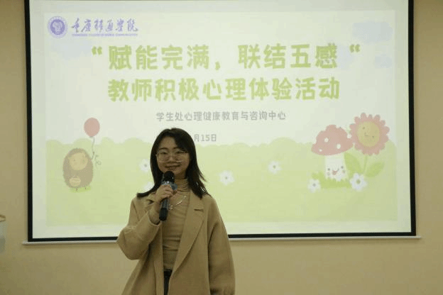 人体五感分别为“听觉、嗅觉、视觉、味觉、触觉”,它们是人体知觉形成的基础,影响着个人的身心愉悦度和幸福感。为了提升教师的身心健康,营造积极向上的工作氛围,为学生教育教学工作注入新的活力,心理健康教育与咨询中心于2024年11月15日14:00举办“赋能完满,联结五感”教师积极心理体验活动,通过联结身体五感,激发教师的内在潜能,在各类心理体验活动中沉浸式探索自我,愉悦心情、疗愈心情,促进人格完满。此次活动由心理中心专职教师李东芹老师主持。
