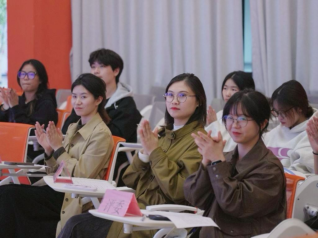 演讲结束后,评委们对选手们的表现进行了专业而细致的点评。林倩老师对大家演讲的主题内容、ppt准备、演讲台风等方面进行了一一评价,并提出对每一位选手的建议,希望大家可以展现出更好的效果。她分享到,演讲的核心在文本的独特,要学会讲故事,演讲主题要鲜明,要有自己的舞台风格。