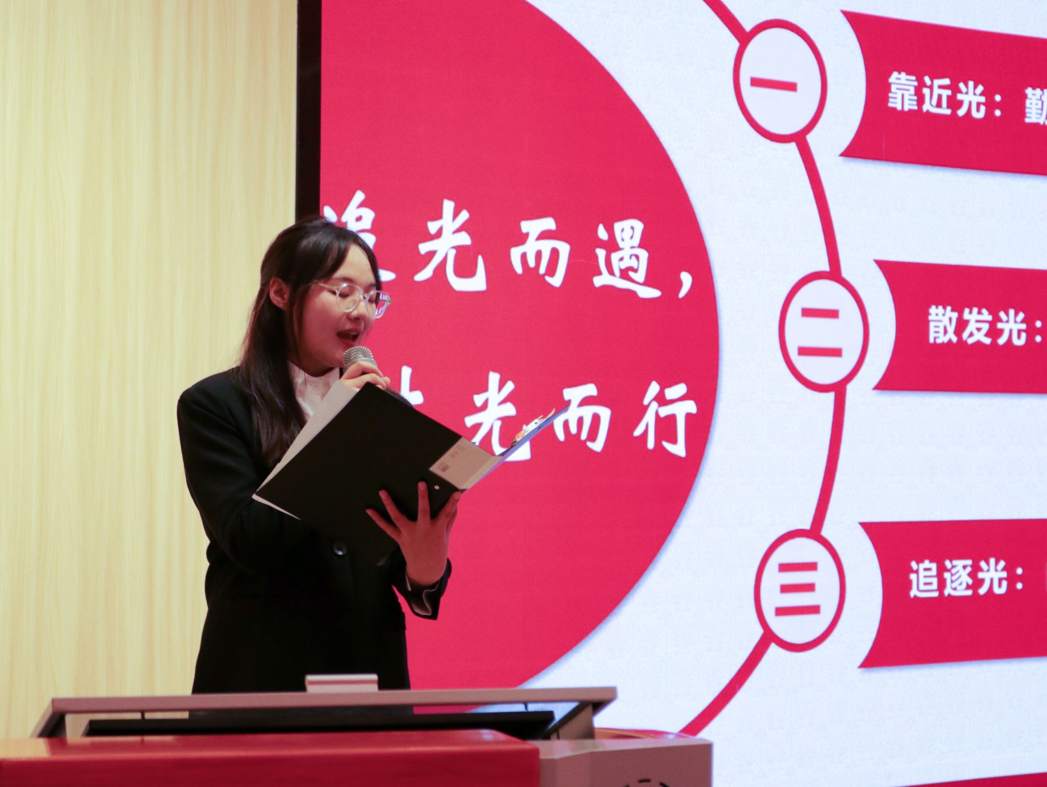 比赛开始,选手们依次登台,结合自己亲身经历,从不畏困难、积极进取、自立自强、感恩传递等几个方面,生动、真挚地讲述自己在新时代受资助后追逐梦想的故事,以国家资助政策扶持下从困境中破茧成蝶的感人事迹阐释资助对于梦想的助力。他们把“感恩”种在心底、将“拼搏”化作力量、让“梦想”在行动中绽放,深深打动评委和观众,展现戏影学子自强不息的精神态度。