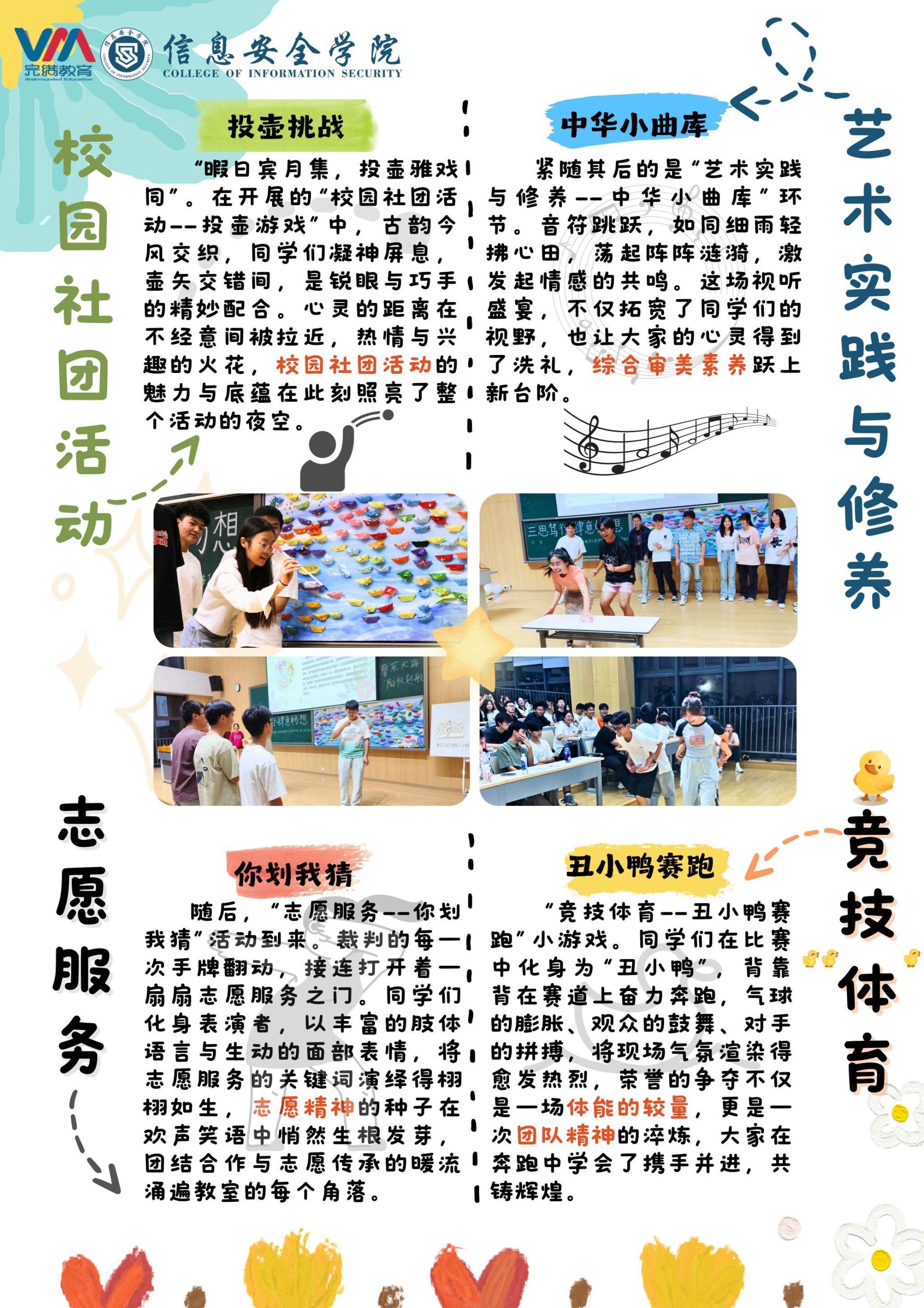完满板块游戏环节,投壶游戏体验传统文化魅力、激发社团兴趣;音乐知识抢答提升艺术素养;“你划我猜”传承志愿服务精神;丑小鸭赛跑培养团队和竞技意识,让学生深入理解完满教育,收获快乐友谊,明晰全方位素质教育内涵,推动学生在完满教育道路上积极前行,充分展现年级会的特色与育人价值。
