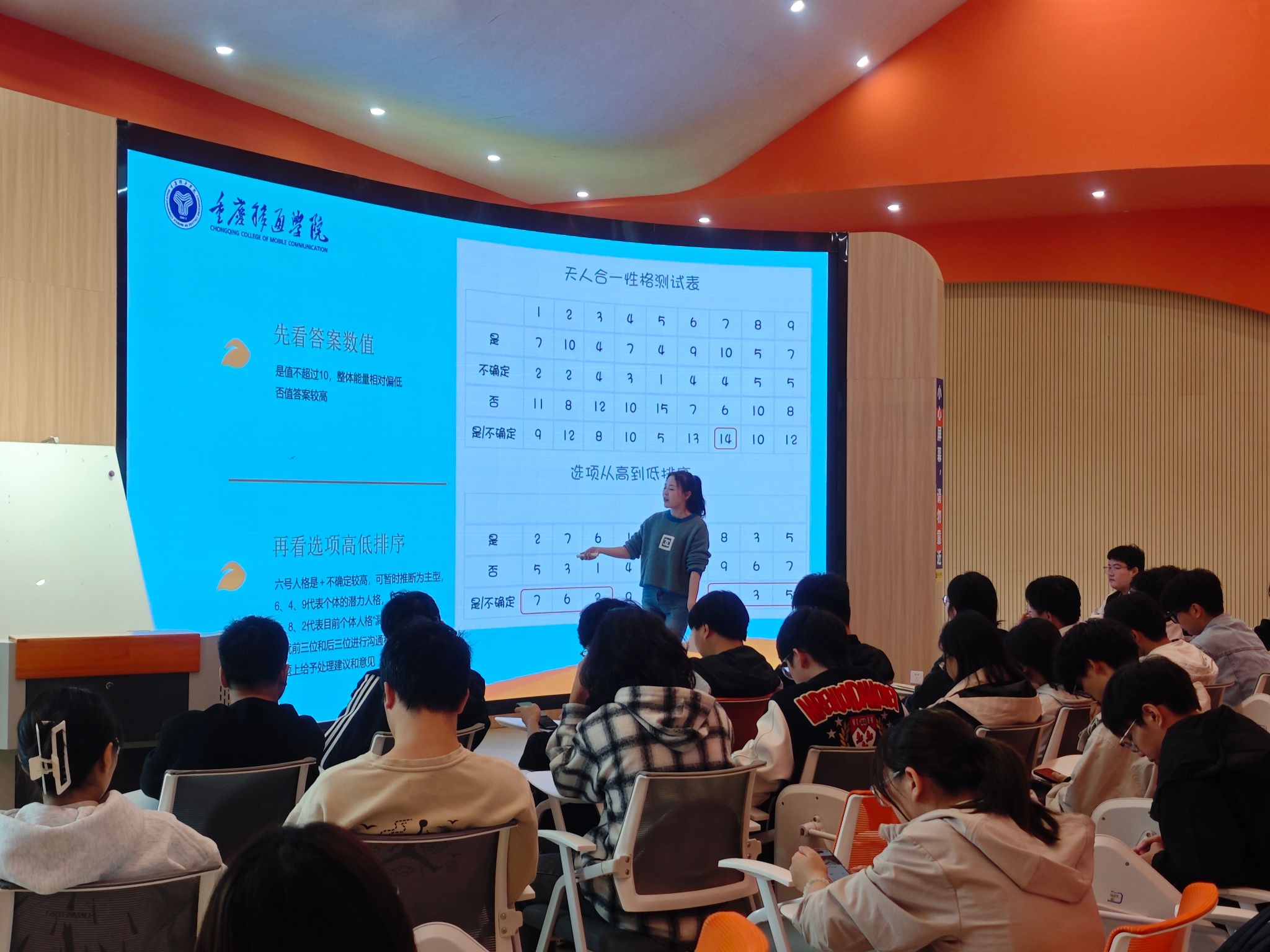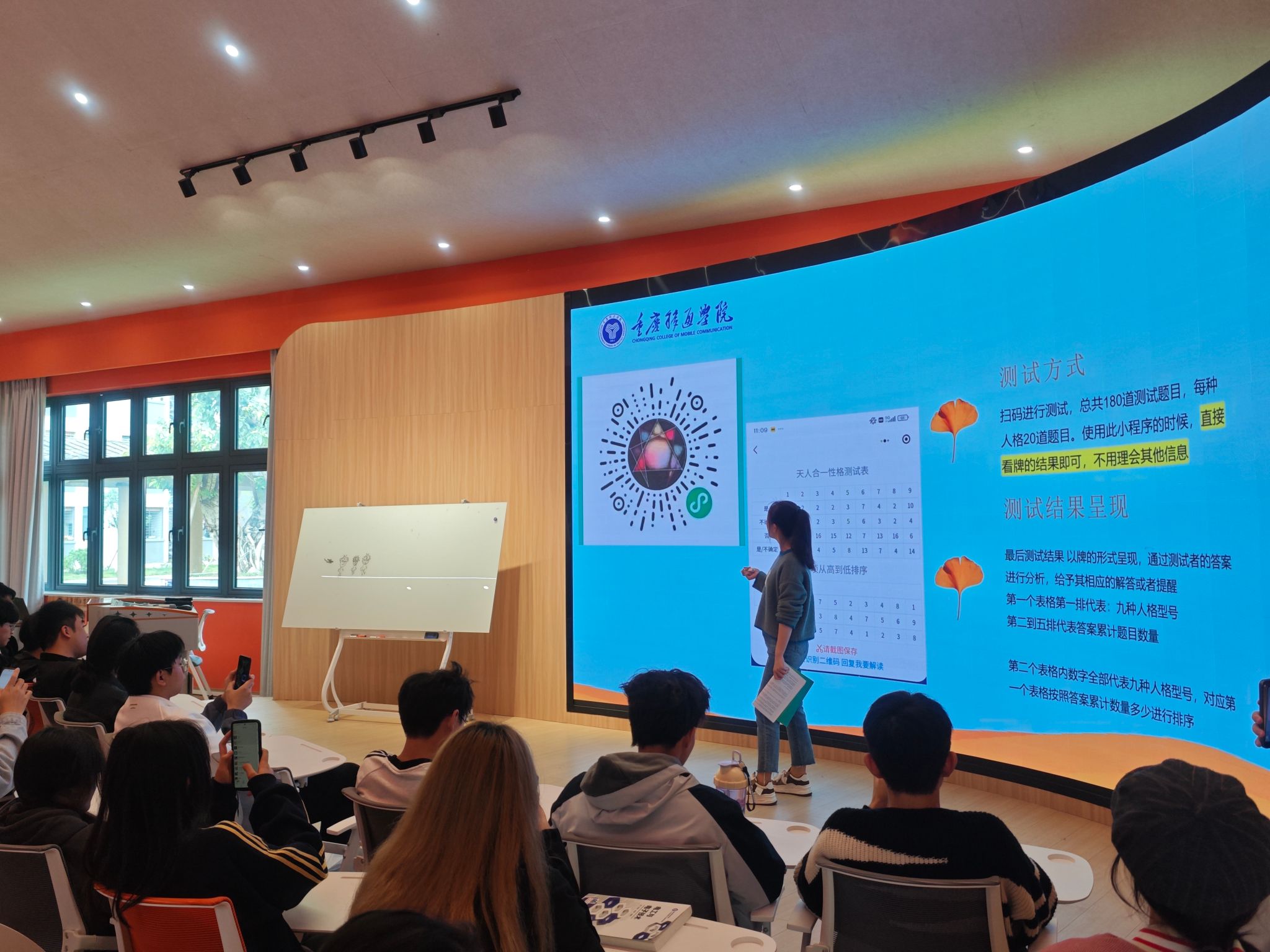 为增强活动的互动性与趣味性,丁老师组织了一系列的互动环节。邀请学生们参与九型人格测试,通过答题的方式了解自己的性格类型,并分享自己的测试结果与感悟;设置小组讨论环节,围绕九型人格理论展开深入探讨,共同探索性格与成长之间的奥秘。