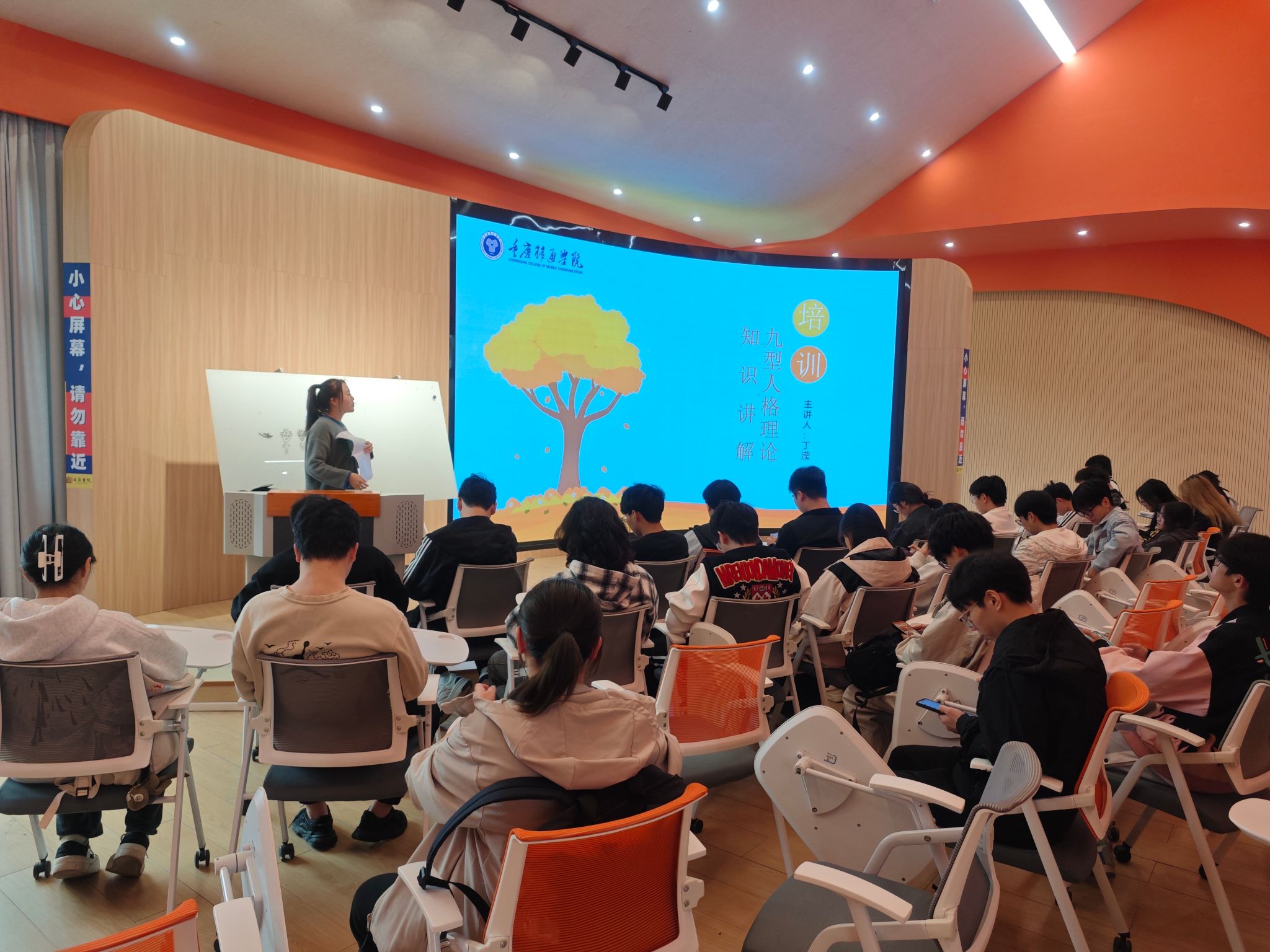 在当下社会丰富多样的环境中,大学生作为明日社会的中坚力量,其独特个性的培育与心理世界的成熟愈发受到关注。为促进大学生深化对自我内在的认识,强化其心理韧性。11月12日中午,计算机学院在古剑书院含光报告厅成功举办了一场以“九型人格理论知识讲解”为主题的特色活动。此次活动由学院心理健康教育板块的负责人丁滢老师主持,旨在通过深入浅出的讲解,帮助学生们更好地理解九型人格理论,促进个人成长与心理健康。