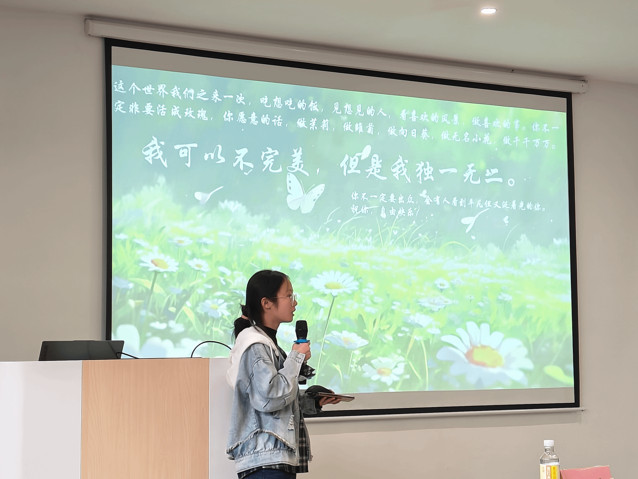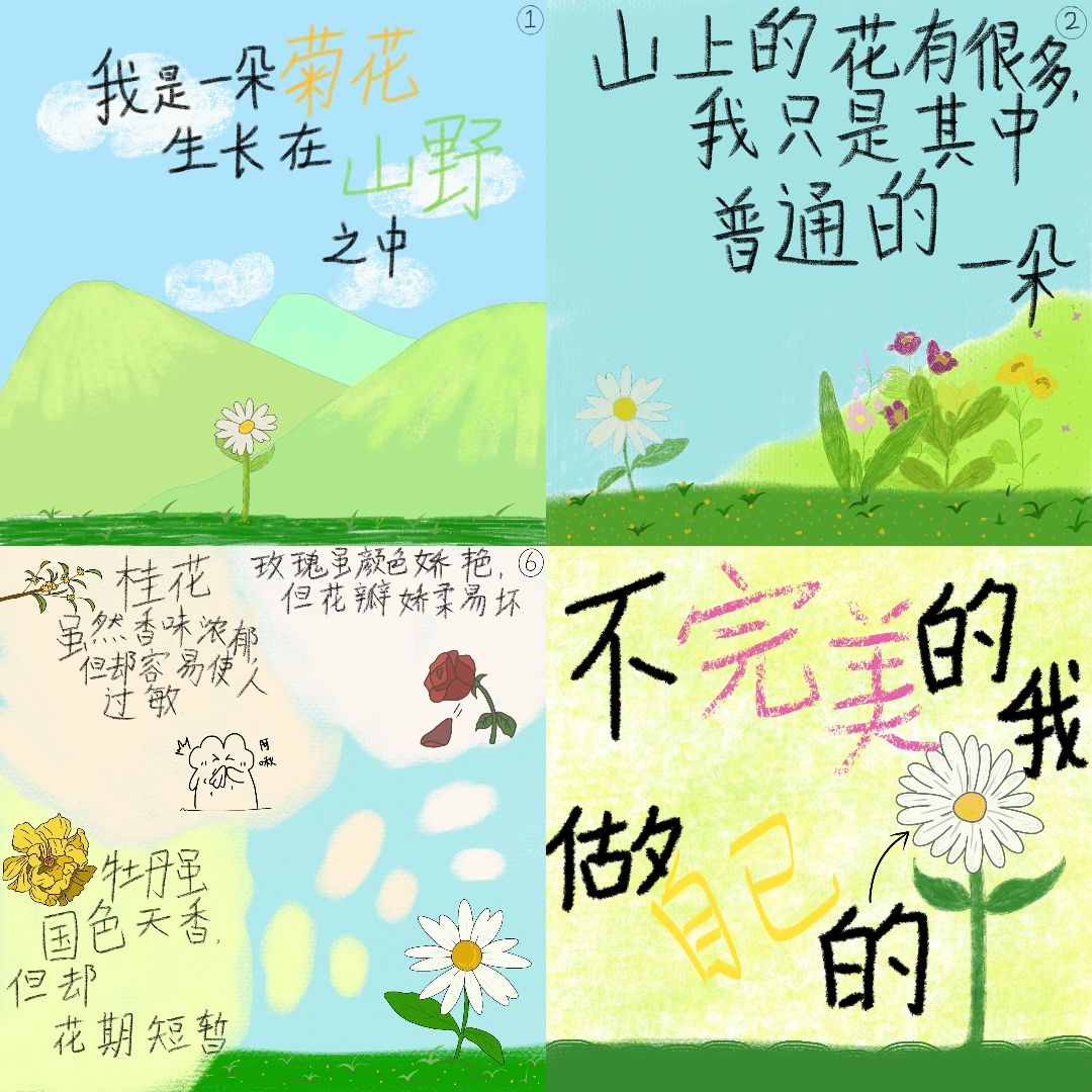 第七组是由蔡君卓和李星乐带来的《不完美的我,做自己的花》。不完美,才是真实的我们,忽略掉外界的一些不好的评语,去做自己,去感受自信带来的美丽。