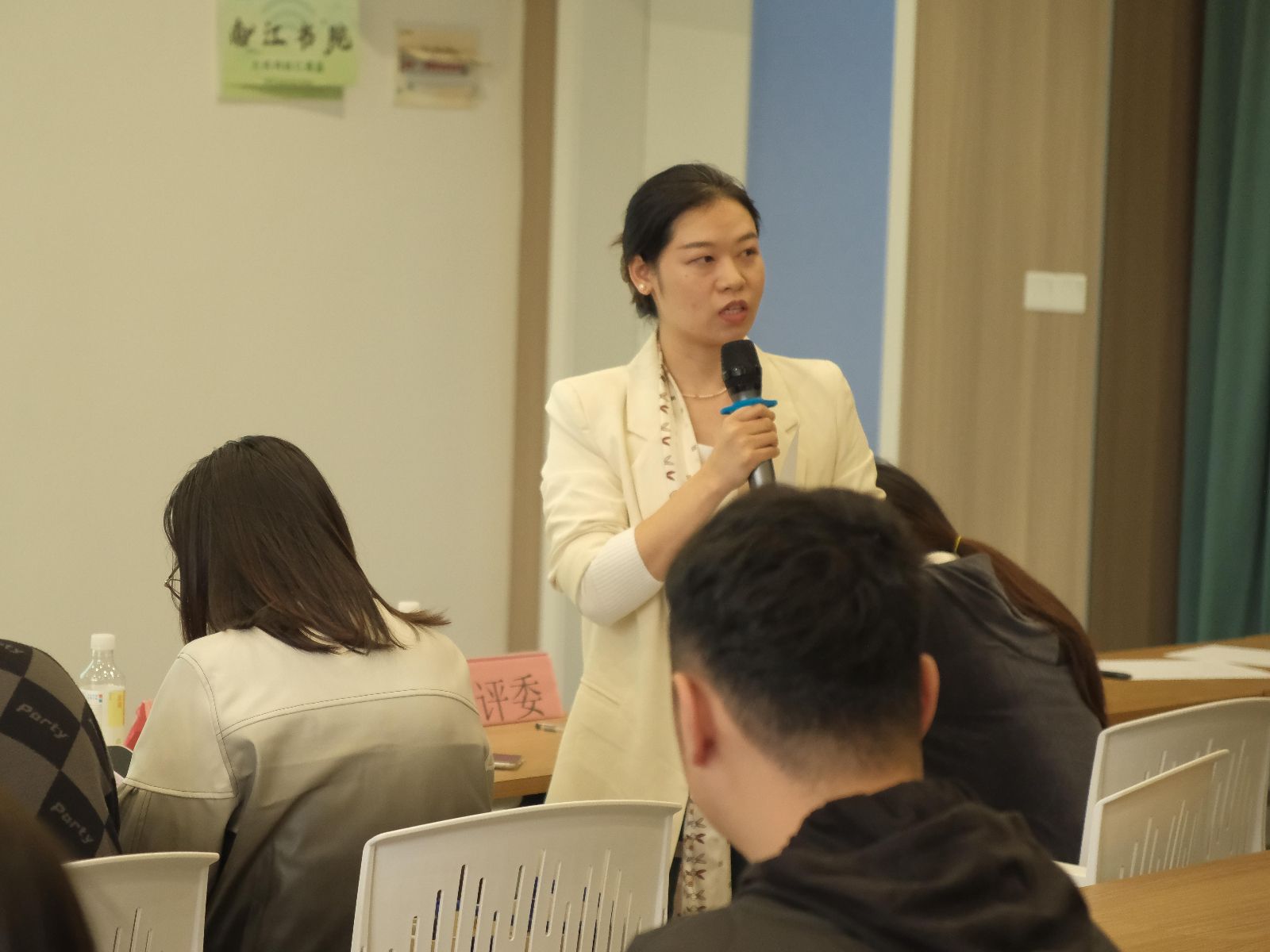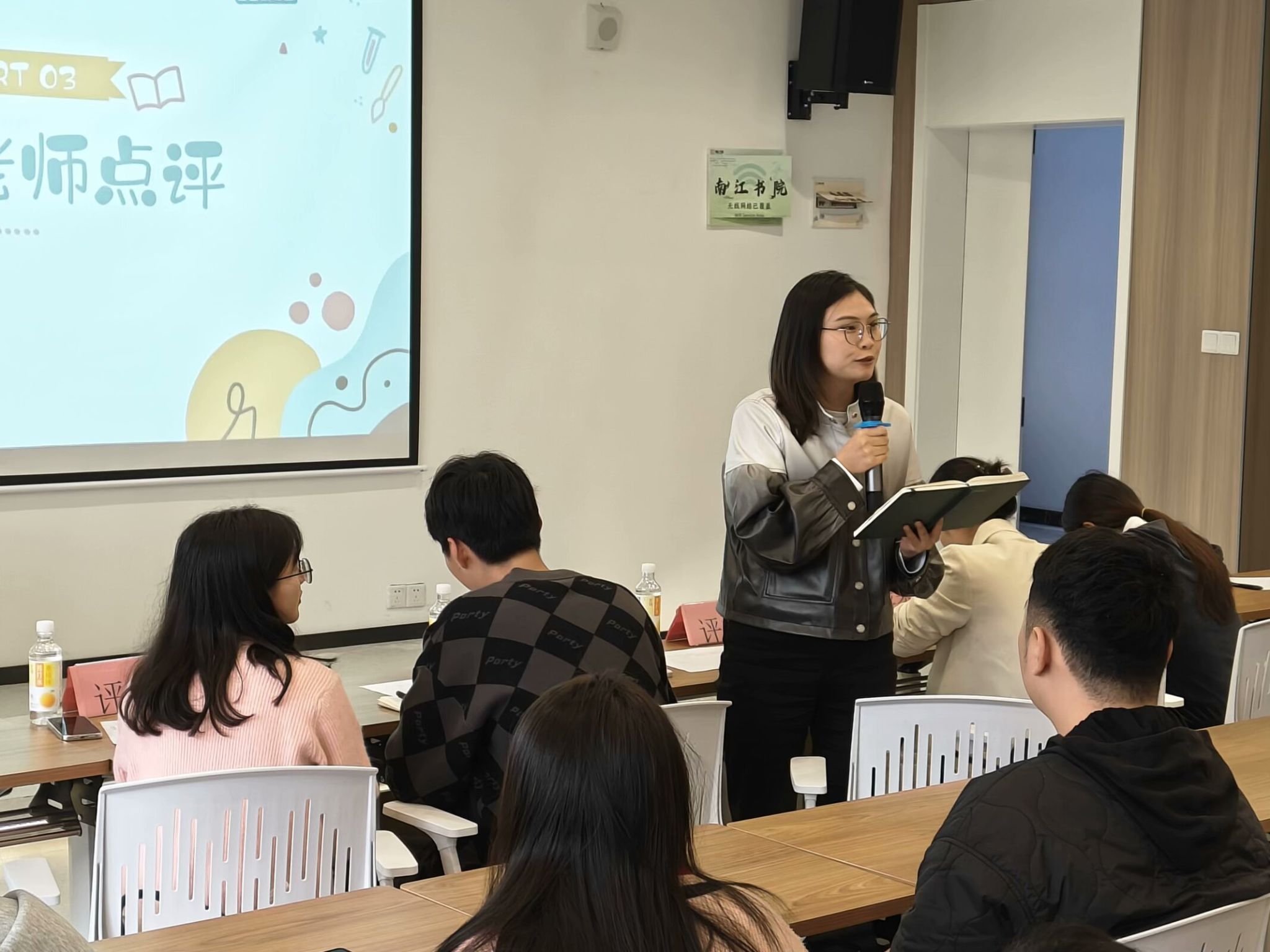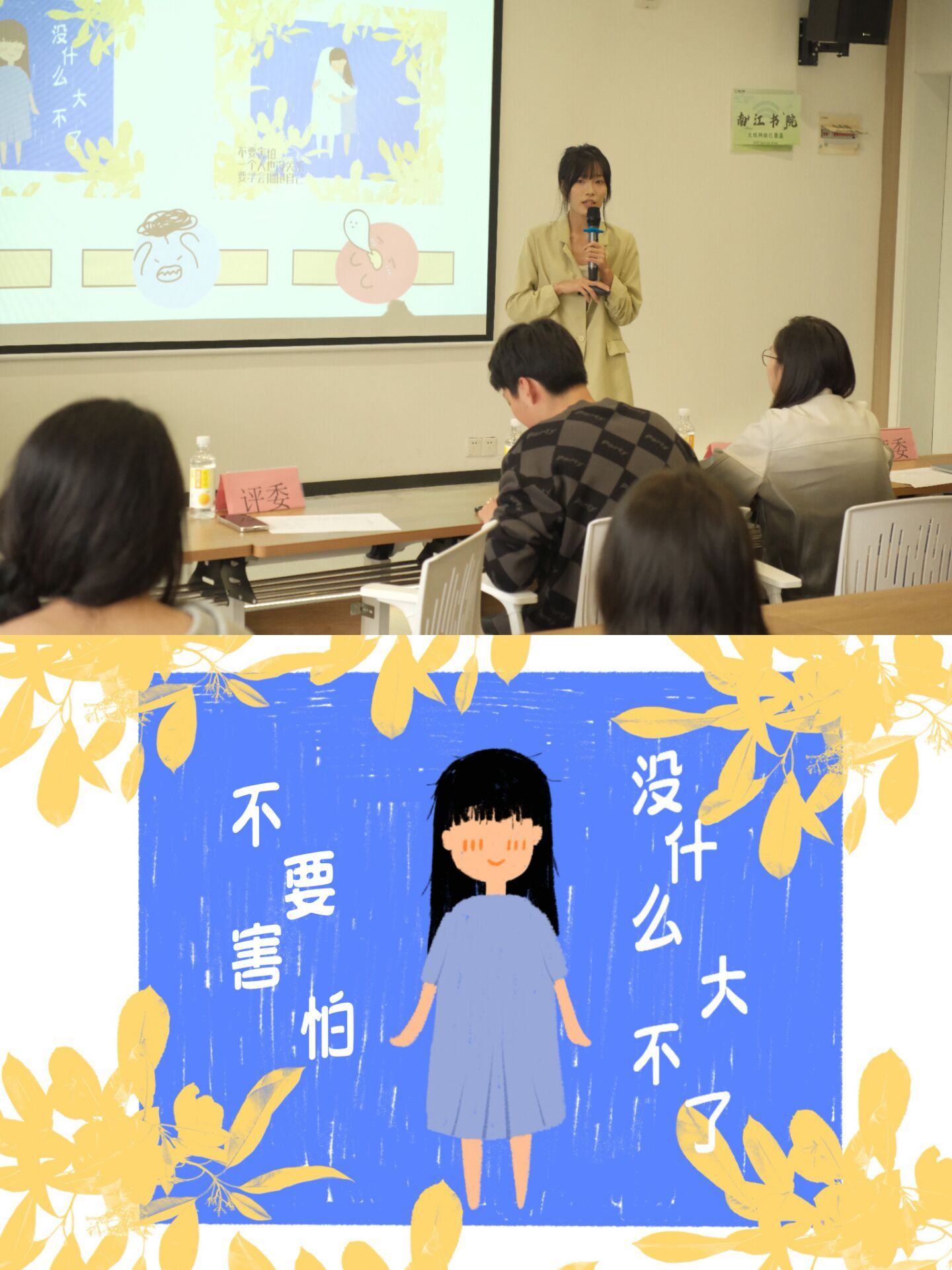 曾玉娇老师对每一组选手的答辩内容进行了细致入微的指导,指出其中的亮点与不足,并给出了具体的改进建议,她鼓励选手们从容自信地讲述自己的创作,将“心理+绘本”进行深度融合,寓心理健康于日常学习、生活与工作中,希望同学们能够注重个人信心的打造与精神风貌的塑造,并结合所学专业绽放出属于自己的风采,无论处于人生哪个阶段,都不要自我封闭,不要让自己处于无形的枷锁之中,要保持初心,朝自己的梦想勇敢前进。最后,涂杨杨老师从心理学专业出发,对同学们的绘本创作理念、设计巧思上进行了点评,引导同学们结合自身经历进行特色创作,希望同学们借助心理学专业书籍与理论模式,探索自我、本我、超我的逻辑关联,将心理健康的理念内化于心、外化于行,共同创造一个更加健康、积极、乐观的学习和生活环境。