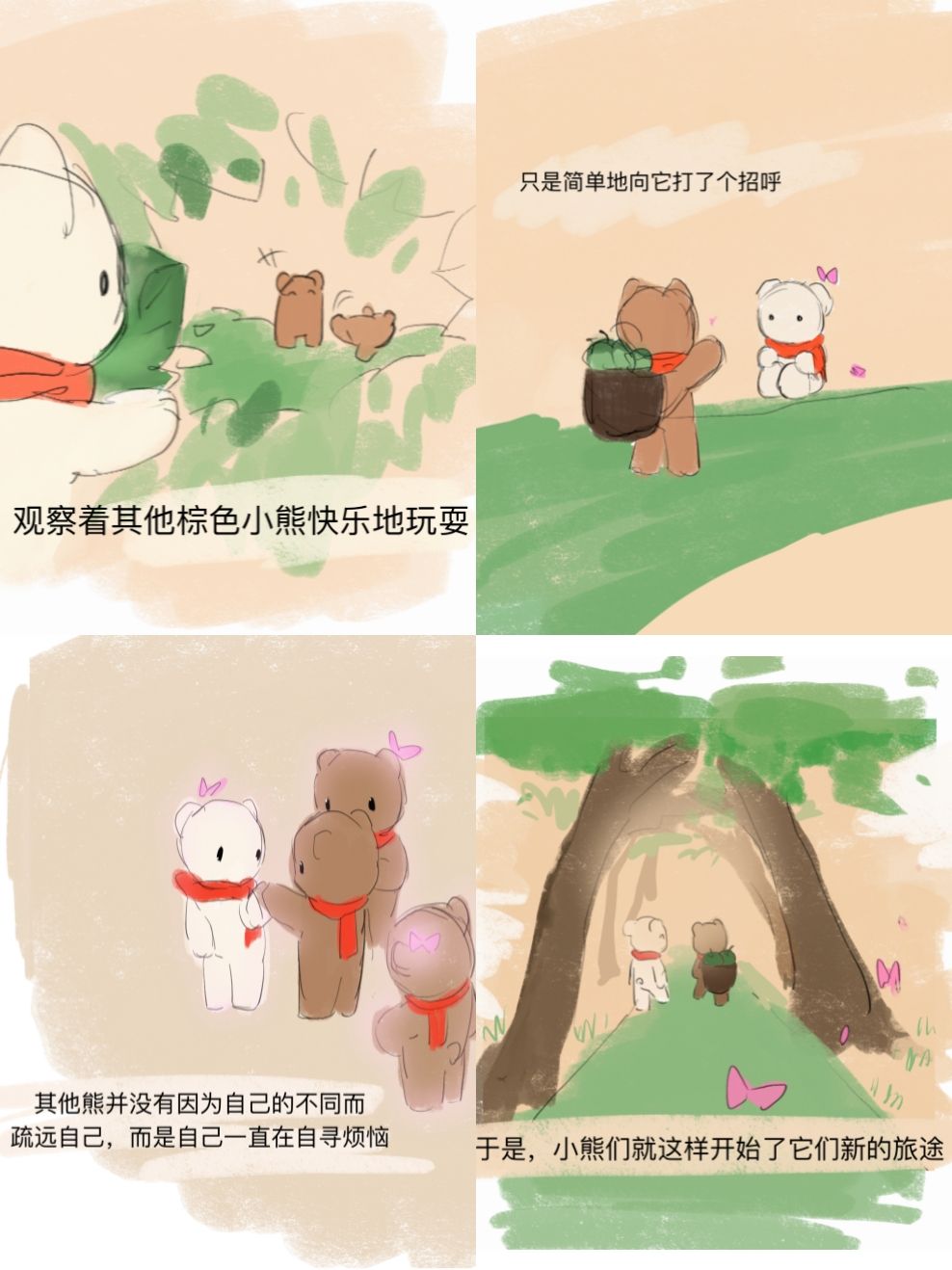第十一组是由郭苏瑶和李芋莹带来的《白色小熊》,在一片洁白的雪地里,有一只可爱的小熊在欢快地奔跑,小熊的自由欢快,象征着永怀纯真与欢乐的自己。