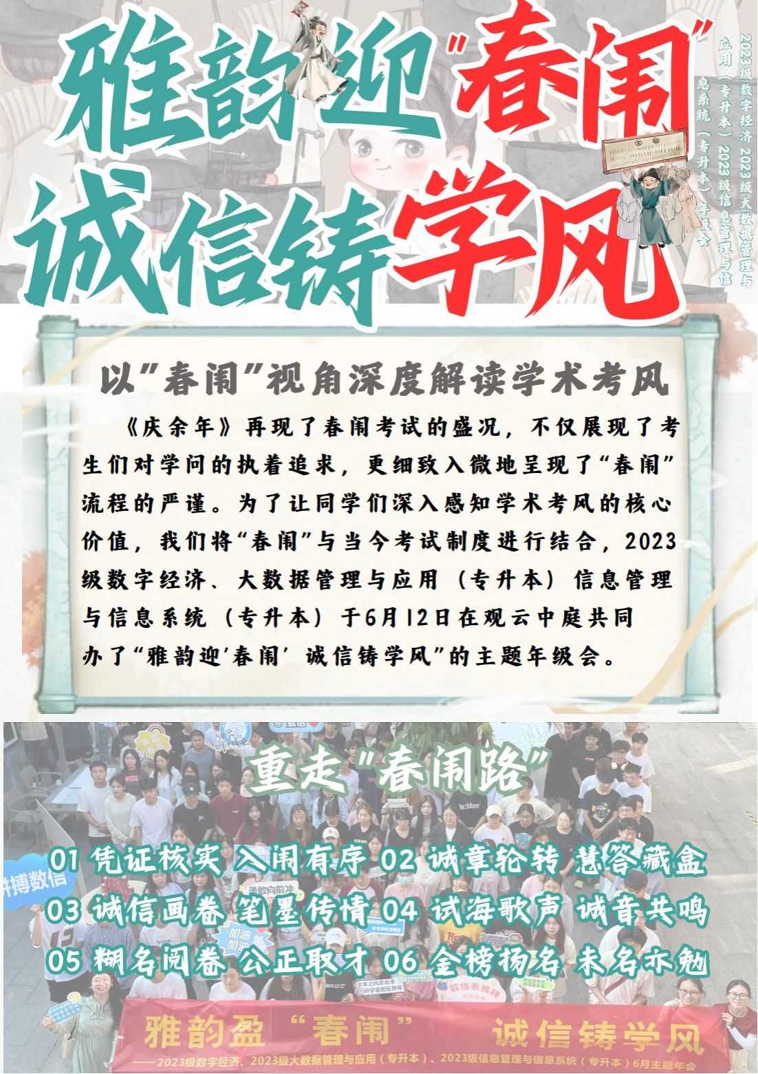 经验分享:6月临近期末考试,年级会聚焦诚信考试,旨在通过系列教育活动,严肃考风考纪,强化学生诚信意识,确保考试公平公正,培养学生良好品德。我们深刻认识到“诚信”对于当代大学生的重要性。当前热播电视连续剧《庆余年》再现了春闱考试的盛况,不仅展现了考生们对学问的执着追求,更细致入微地呈现了“春闱”流程的严谨。为了让同学们深入感知学术考风的核心价值,我们将“春闱”与当今考试制度进行结合,不仅让同学们回望历史,更让他们身临其境感受现代社会对“诚信”的坚守的重要性。
